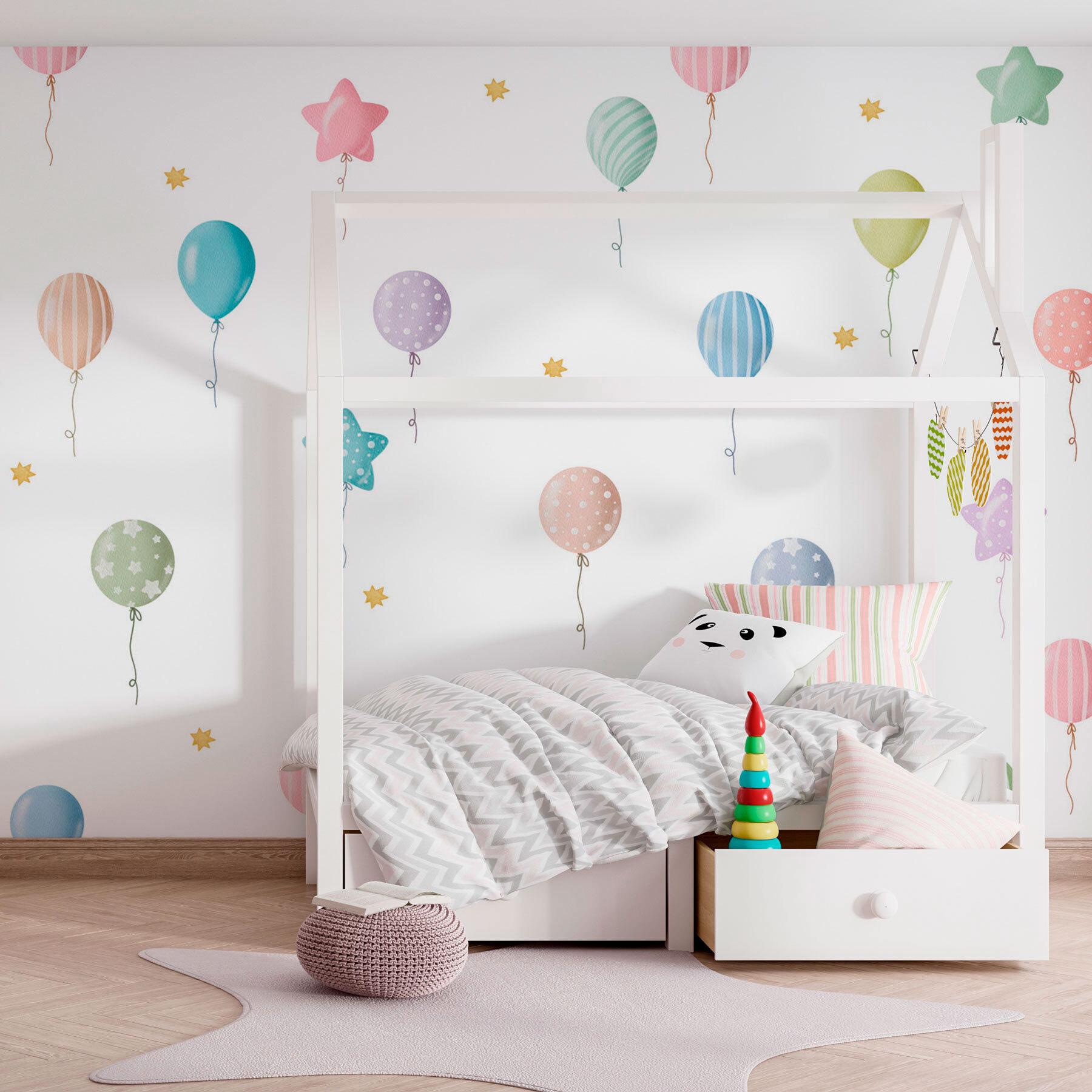 Ilumine qualquer divisão com este mural de parede encantador com balões encantadores e estrelas extravagantes! Imagine entrar num espaço onde balões em tons pastel flutuam como se estivessem prontos para uma festa, enquanto estrelas divertidas cintilam fora do seu alcance. É perfeito para quartos de crianças mas, sinceramente, quem disse que os adultos não podem divertir-se com a magia dos balões? Imagine os mais pequenos a sonhar sob este padrão alegre, sentindo-se como se estivessem num conto de fadas. Provoca alegria, risos e um toque de nostalgia. Deixe que este mural liberte um sentido de aventura e capricho – perfeito para transformar uma parede sem graça numa tela de sonhos!