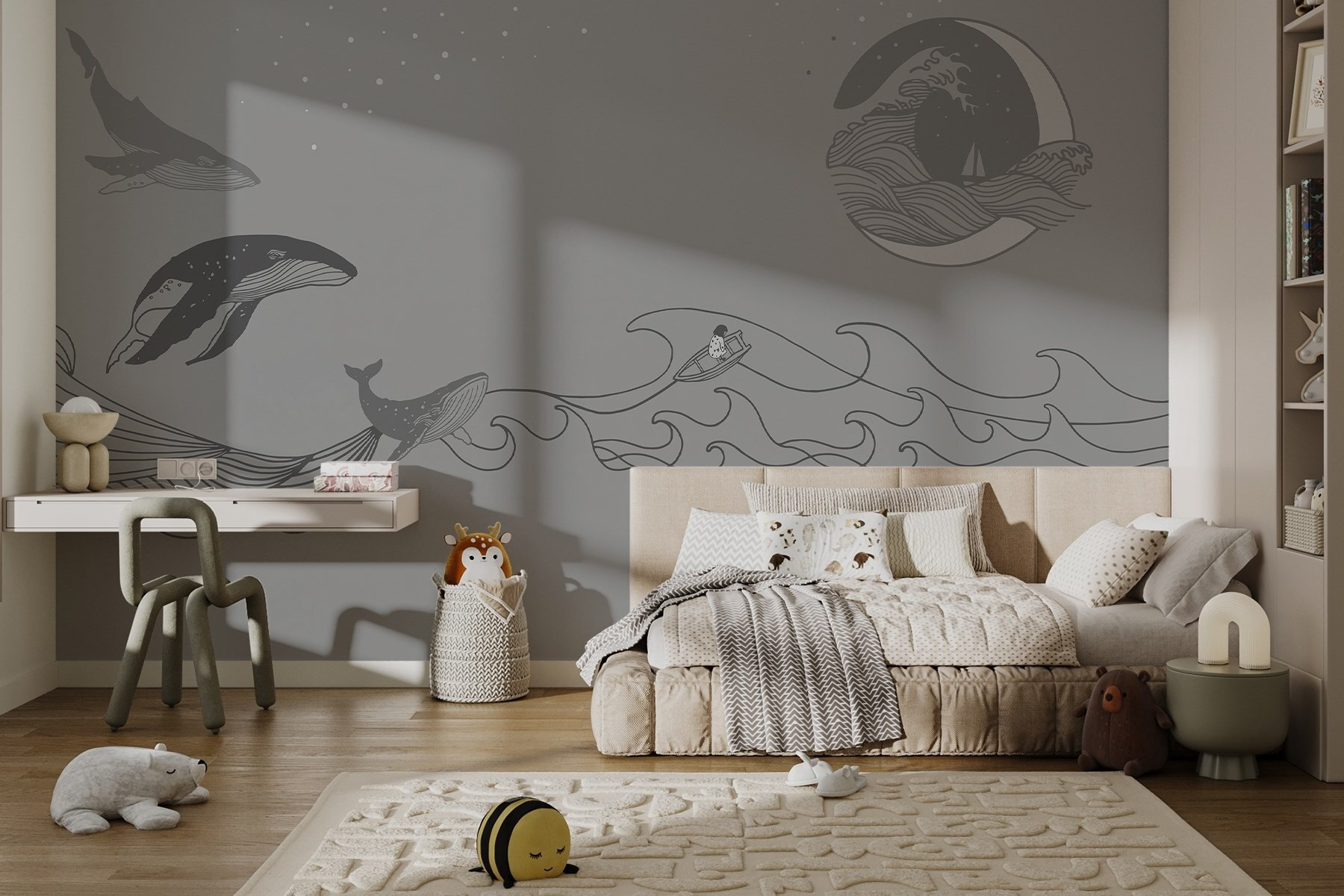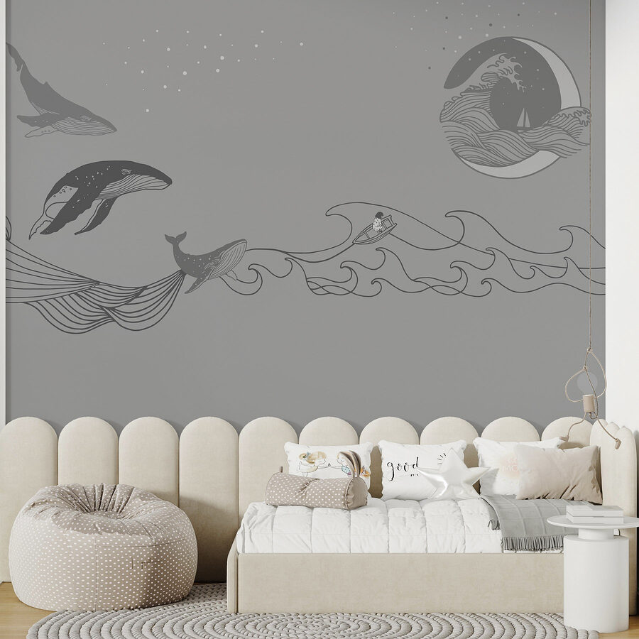 Este mural traz uma vibração calmante, perfeita para salas de estar ou recantos acolhedores. Imagine-se a beber o seu café da manhã, a olhar de relance para estes gigantes gentis e a sentir todas as suas preocupações a desaparecerem – como um protetor solar num dia quente! As cores suaves convidam a uma sensação de paz, tornando-o num cenário encantador para tardes preguiçosas ou conversas profundas. É mais do que uma decoração; é uma experiência à espera de se revelar. Quem sabe, talvez inspire algumas aventuras náuticas suas!