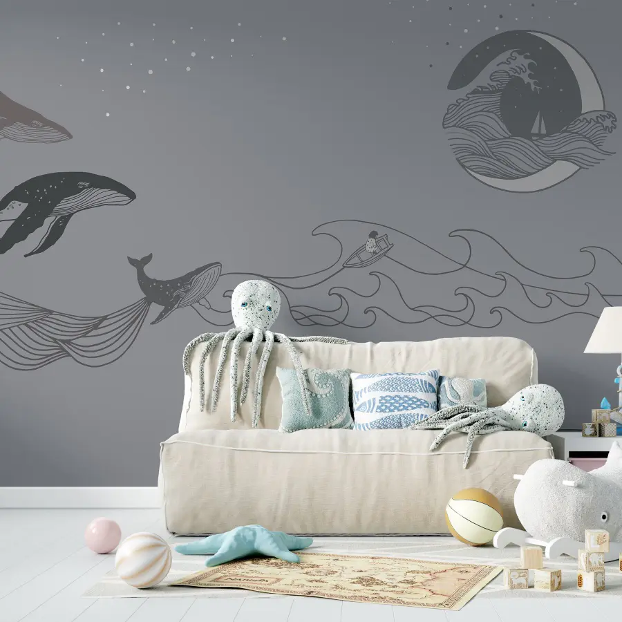Mergulhe no mundo sereno da vida oceânica com este deslumbrante mural de baleias, flutuando graciosamente num fundo cinzento suave. Imagine entrar no seu espaço e sentir instantaneamente as vibrações calmantes – como se os sussurros do oceano estivessem mesmo na ponta dos seus dedos. Estas baleias, desenhadas com tanta elegância, trazem um espírito aventureiro que pode despertar devaneios sobre o mar. Imagine uma noite acolhedora, talvez a beber chá, enquanto as ondas suaves dançam na sua parede. Este mural é perfeito para criar um recanto tranquilo ou para adicionar um toque de charme à beira-mar sem o fato de banho molhado! Não se trata apenas de decoração; é um convite para sonhar.