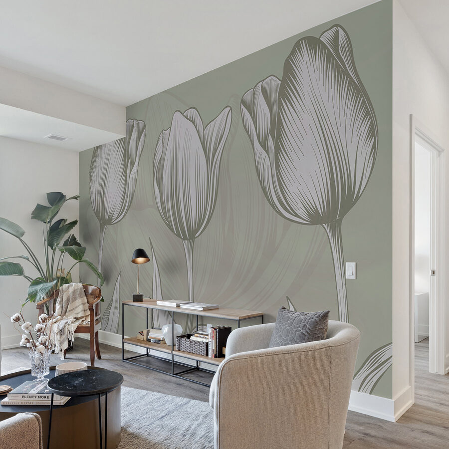 Transforme qualquer parede numa lufada de ar fresco com este mural encantador que apresenta uma linha de flores num fundo verde suave. Imagine-se a entrar num jardim tranquilo sem as abelhas incómodas! Estas flores lindamente desenhadas dão um toque de elegância e capricho ao seu espaço. Imagine-se a beber café junto à parede, perdido em pensamentos, enquanto as cores calmantes o envolvem como um abraço caloroso. É como ter a natureza dentro de casa, sem a lama nos sapatos. Perfeito para salas de estar, quartos ou para aquele corredor incómodo. Diga adeus às paredes sem graça e olá a uma fuga floral!