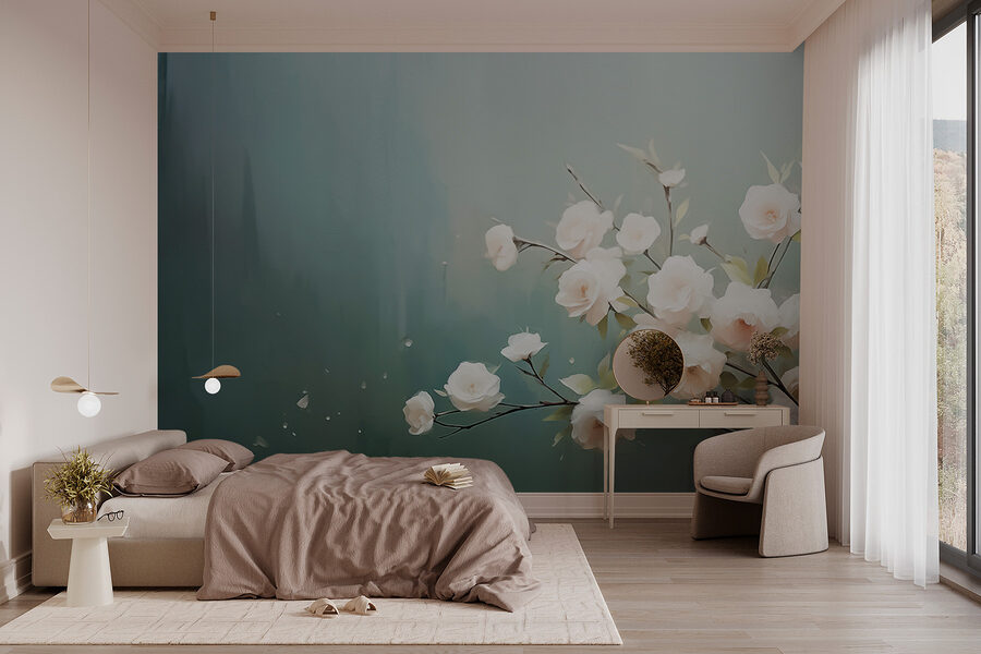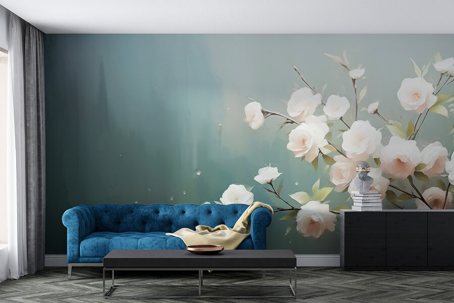 Imagine-se a enrolar-se com um bom livro junto a este mural, com os tons subtis a criar um ambiente que é simultaneamente refrescante e acolhedor. É como trazer um pouco da natureza para dentro de casa, sem o regador. A sério, quem não gostaria de acordar com esta beleza floral? Perfeito para os amantes de uma decoração única, é uma forma simples de fazer uma grande afirmação!