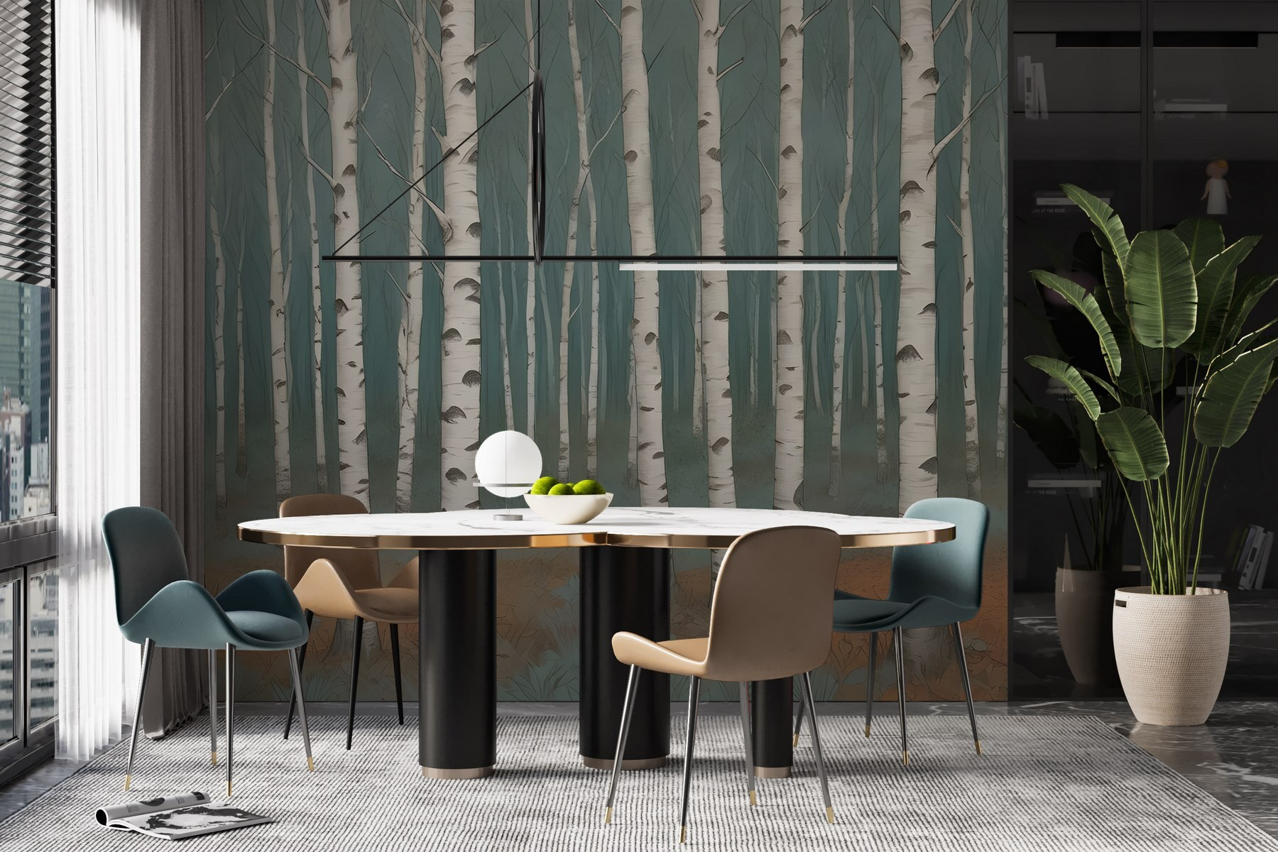 Entre numa floresta serena sempre que olhar para este deslumbrante mural de parede. Com um bosque de bétulas elegantes, traz a vibração pacífica da natureza diretamente para a sua casa. Imagine-se a enrolar-se com um bom livro, sentindo-se como se estivesse aninhado num retiro acolhedor na floresta. As cores suaves criam uma atmosfera calma, perfeita para transformar qualquer espaço – desde uma sala de estar a um canto de meditação.