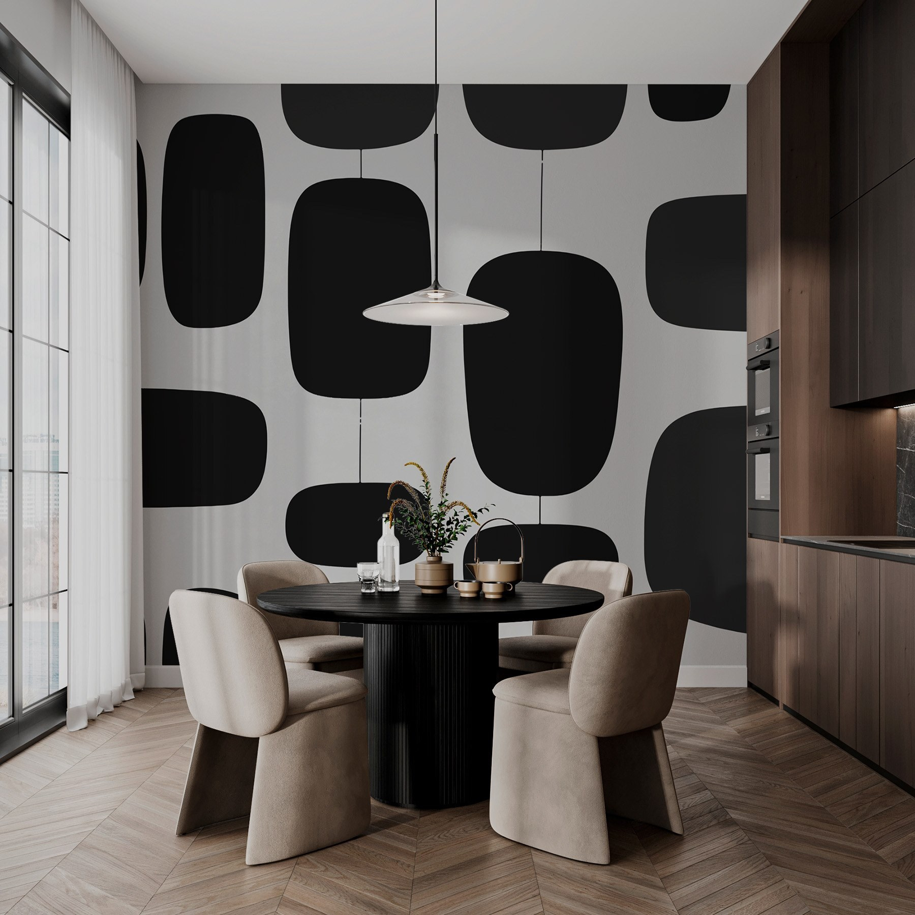 Transforme o seu espaço com este deslumbrante mural de parede a preto e branco – uma peça de referência! O padrão lúdico de formas variadas acrescenta um toque de modernidade, perfeito para dar um toque especial à sua decoração. Imagine entrar no seu quarto e sentir aquela mudança instantânea de vibração. É como a arte a dar vida às suas paredes.