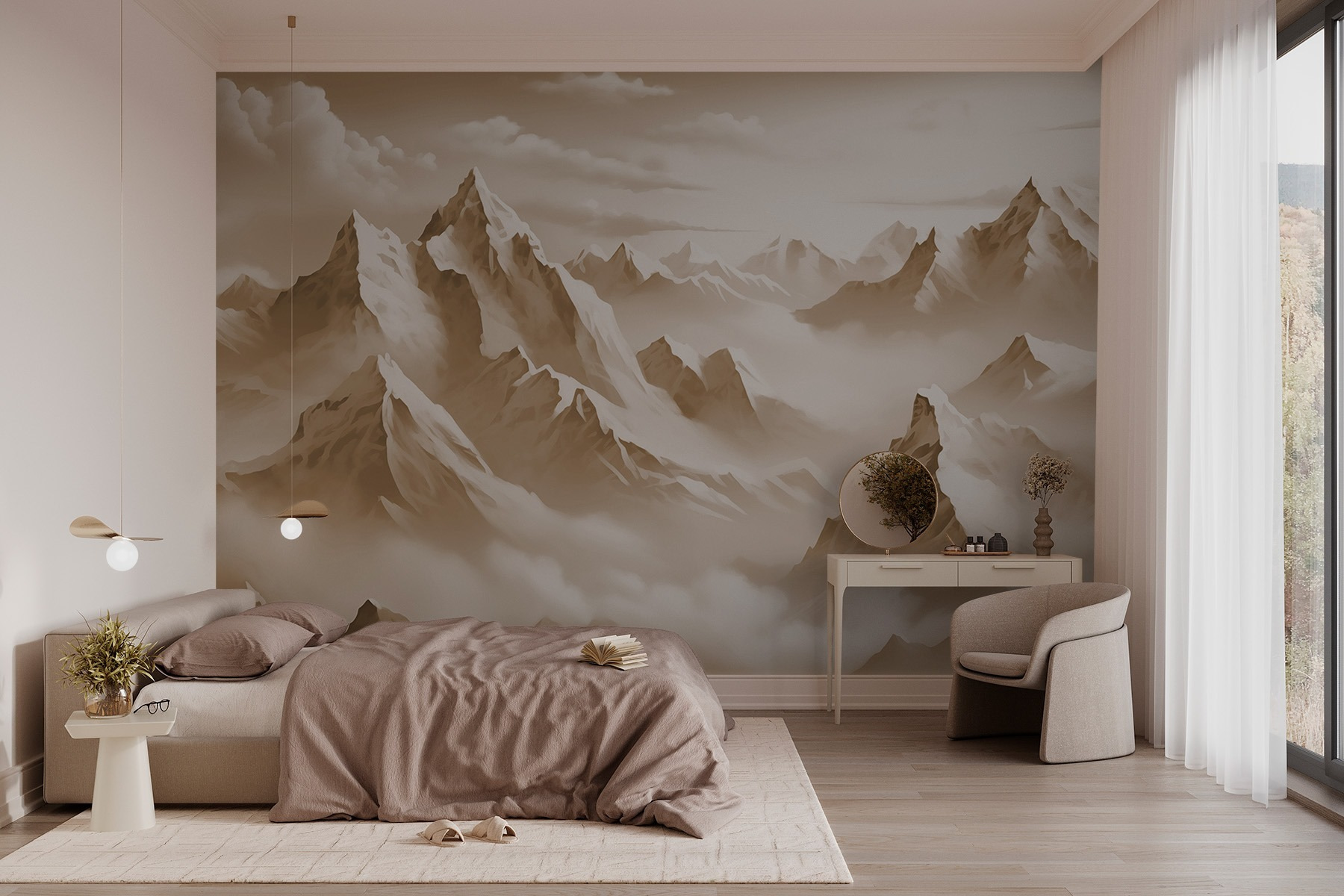 Transforme qualquer divisão numa fuga serena com este deslumbrante mural de parede de uma cadeia de montanhas envolta em nuvens suaves. É como ter umas mini-férias na sua parede! Imagine acordar, beber café e sentir-se como se estivesse aninhado nas montanhas – sem necessidade de botas de caminhada. O efeito suave da aguarela cria uma vibração calmante, perfeita para um quarto ou um recanto de leitura acolhedor. Os amigos podem começar a perguntar se se mudou para uma cabana. Confie em mim, este mural tem um encanto que até o seu amigo com mais estilo admiraria! Perfeito para adicionar um pouco da beleza da natureza sem nenhum dos insectos do exterior.