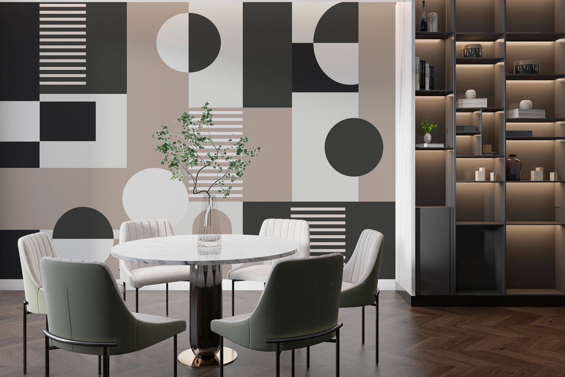 Transforme o seu espaço com este deslumbrante mural de parede que apresenta uma mistura divertida de formas geométricas. É como uma galeria de arte moderna mesmo na sua sala de estar, o que é perfeito para suscitar conversas. Imagine-se a enrolar-se com um bom livro ou a receber amigos enquanto eles admiram os pretos arrojados, os beges suaves e os brancos impressionantes. Este mural acrescenta um toque de sofisticação sem ser abafado – quem não gosta de um pouco de elegância peculiar? É fácil esquecer o mundo lá fora quando se está rodeado de arte como esta. E, sejamos honestos, também ficaria fantástico no Instagram!