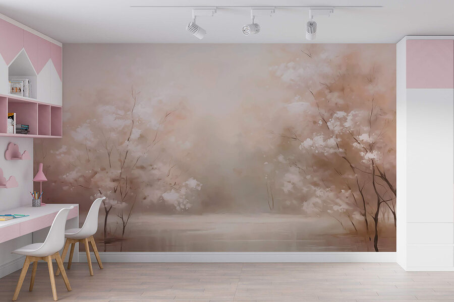 Imagine entrar num oásis sereno com este mural de parede, “Água com árvores e um céu enevoado”. É como capturar um suave sussurro da natureza diretamente na sua parede, uma paisagem de sonho em aguarela suave que acalma instantaneamente a mente. Imagine manhãs preguiçosas a bebericar café enquanto contempla essas delicadas flores a espreitar através do nevoeiro. Os tons suaves criam uma atmosfera acolhedora que é perfeita para descontrair após um longo dia. Não se trata apenas de decoração; é uma mini-férias para os olhos. Os amigos podem até perguntar se devem tirar os sapatos quando entram!