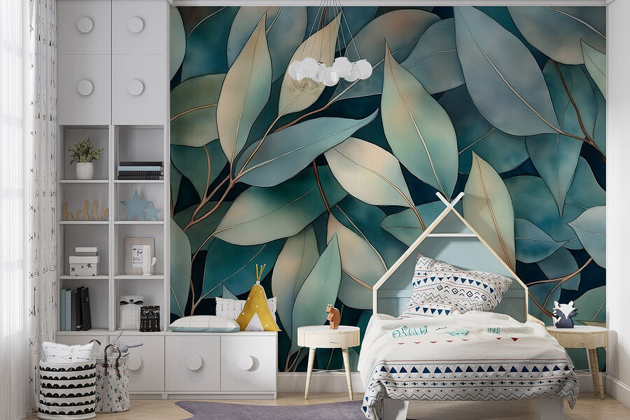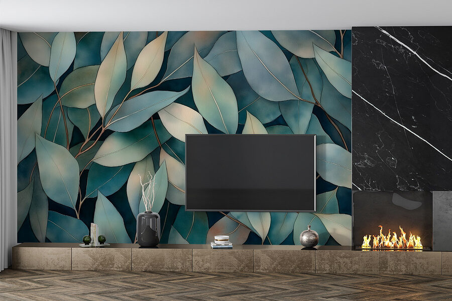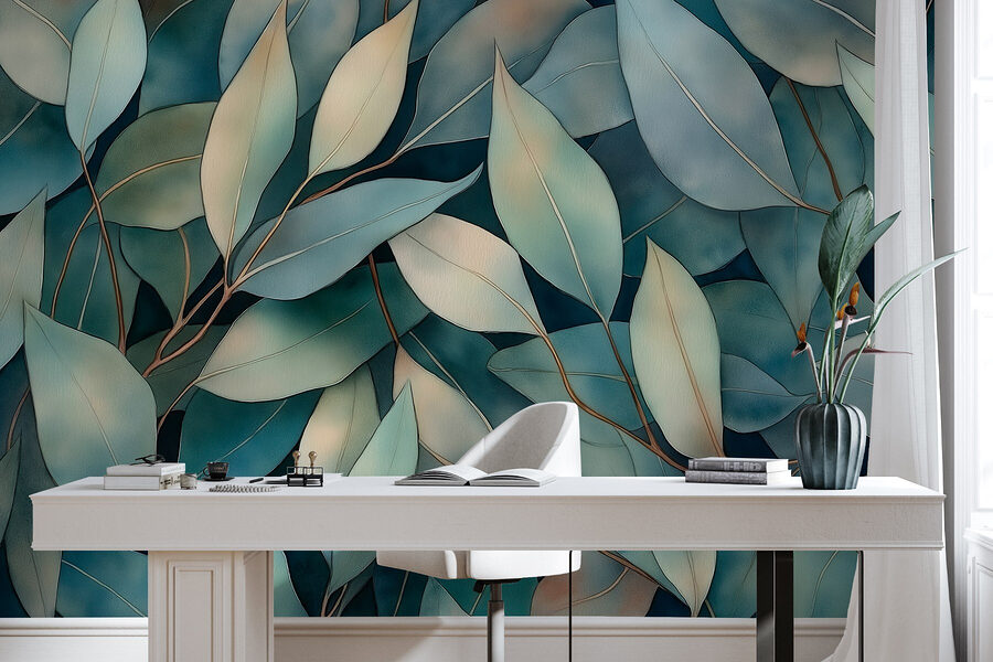 Traga uma lufada de ar fresco para dentro de casa com este mural encantador que apresenta um grupo exuberante de folhas num fundo azul calmante. Imagine-se a acordar e a beber café enquanto está rodeado por este sereno toque de natureza. É como ter uma mini floresta tropical na sua sala de estar. Perfeito para quem deseja um pouco de vegetação, mas pode não ter um polegar verde. Cada folha parece dançar, convidando a uma sensação de tranquilidade e capricho. Quer seja num recanto de leitura acolhedor ou numa cozinha animada, este mural dá o ambiente certo – digamos que é um ponto de partida para a conversa!