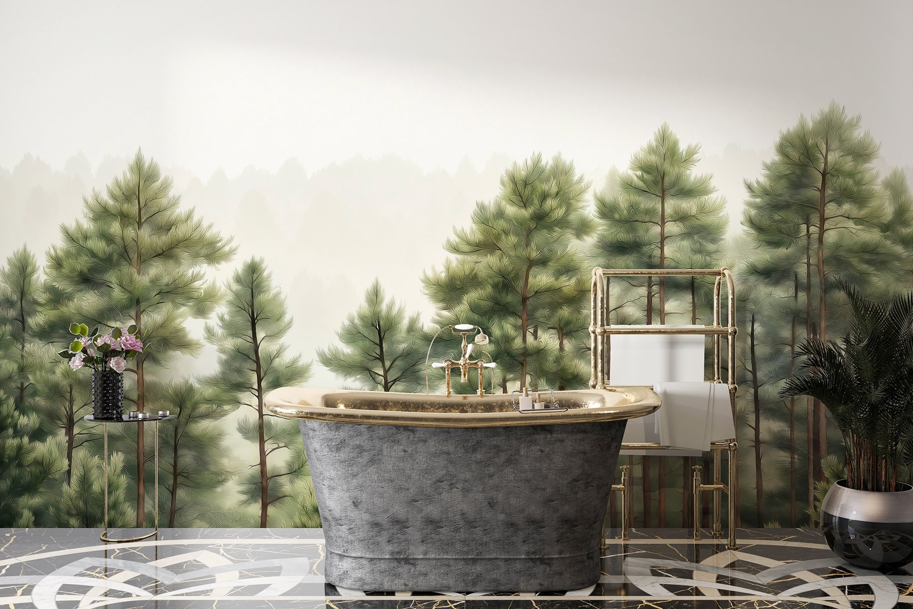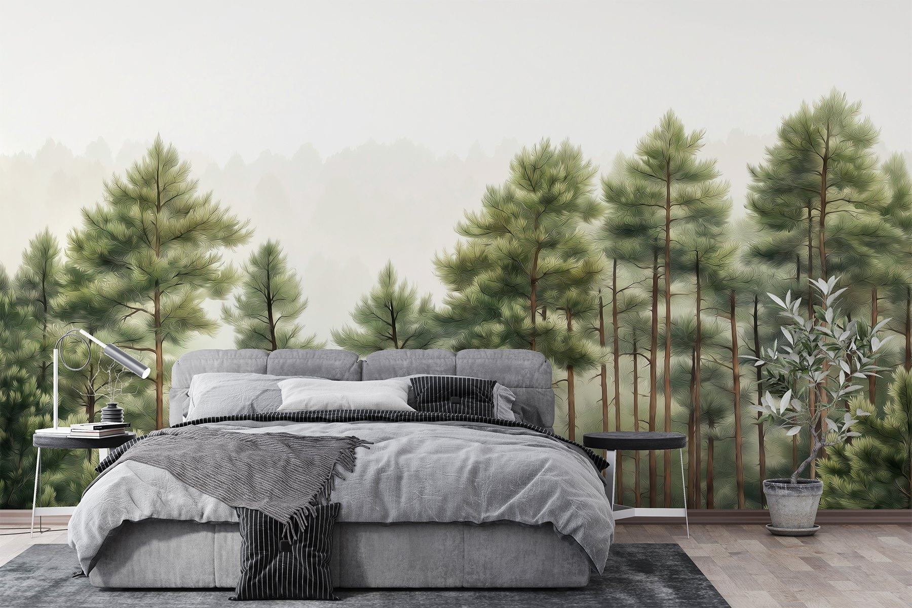 Transforme o seu espaço com este espantoso mural de parede, “Grupo de árvores numa floresta”. Imagine isto: todas as manhãs, acordar com uma floresta serena mesmo em sua casa. Imagine os efeitos calmantes – como um abraço acolhedor da própria natureza. Os verdes suaves e a névoa suave atraem-no, convidando-o a uma sensação de paz e tranquilidade. É como ter a sua própria fatia do ar livre, sem os insectos e a lama. Perfeito para criar um recanto de leitura acolhedor ou uma parede de realce refrescante. Quem precisa de férias quando pode trazer a beleza da floresta para dentro de casa? Acrescente um toque do encanto da natureza e prepare-se para sonhar acordado.