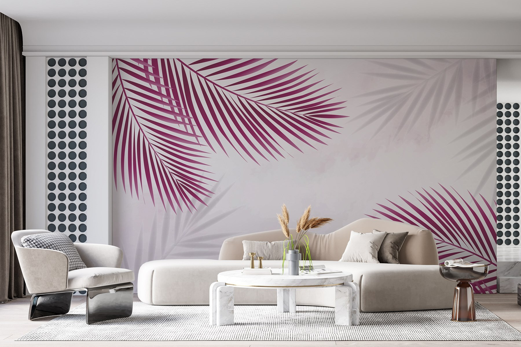 Transforme qualquer espaço com este mural de parede vibrante com deslumbrantes folhas roxas sobre um fundo branco fresco. Imagine entrar numa sala e sentir-se como se estivesse numa escapadela tropical sem ter de fazer uma mala. Estas folhas arrojadas chamam a atenção e criam uma sensação de energia – perfeitas para uma cozinha animada ou uma sala de estar acolhedora.