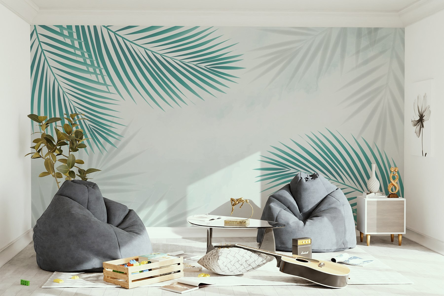 Transforme qualquer espaço com o mural de parede “Grupo de Folhas Verdes”. É como convidar uma fatia dos trópicos diretamente para a sua casa. Imagine isto: chegar a casa depois de um longo dia, deitar-se com um livro e, de repente, sentir-se como se tivesse fugido para um bungalow calmo à beira-mar. Aquelas delicadas folhas de palmeira sussurram relaxamento e serenidade. Os tons suaves de verde e as texturas delicadas criam um ambiente acolhedor que é perfeito para descontrair. É uma recordação deliciosa para respirar e absorver a beleza à sua volta. Perfeito para qualquer divisão que precise de um toque de natureza, este mural não é apenas decoração; são umas mini-férias todos os dias!