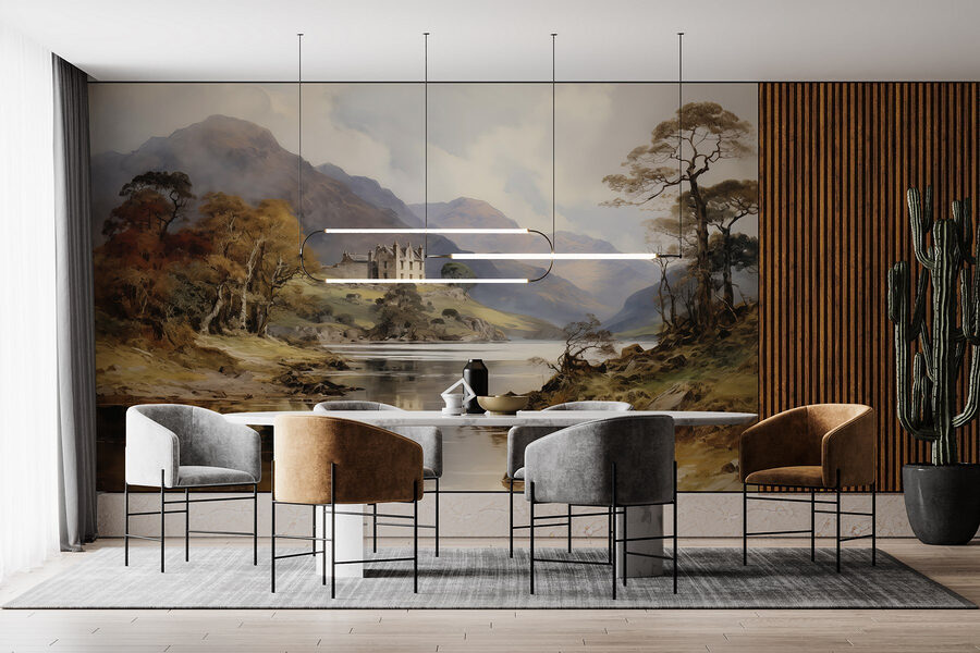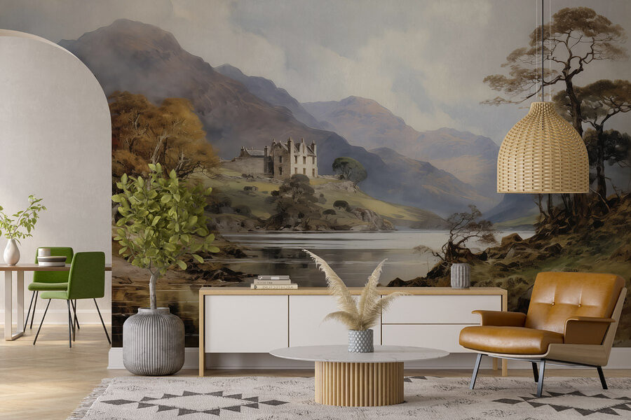 Transforme qualquer divisão numa refúgio acolhedor com este deslumbrante mural em aquarela de um castelo situado numa colina, rodeado por árvores exuberantes e montanhas majestosas. É como entrar num conto de fadas cada vez que passa por ele. Imagine isto: relaxar no seu sofá, a bebericar chá, enquanto as suas paredes ganham vida com uma paisagem de sonho. As cores suaves trazem calor sem serem excessivas, perfeitas para aqueles momentos em que tudo o que se precisa é de vibrações pacíficas. E, quem não gostaria de ter uma vista majestosa de um castelo sem o incómodo de viajar? Basta um pouco de magia para alegrar o dia-a-dia!