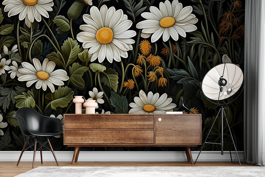 Transforme qualquer divisão num paraíso botânico com este impressionante mural de parede com uma bela variedade de flores e folhas. Imagine entrar no seu espaço e ser recebido por estas margaridas gigantes, com as suas pétalas alegres quase a sussurrar segredos de dias ensolarados. O fundo profundo dá-lhe um toque dramático, fazendo com que essas flores se destaquem como se estivessem prontas para uma festa de verão. Perfeito para a sala de estar ou mesmo para um recanto acolhedor, este mural permite que a natureza venha até si, sem o incómodo de regar! Quem não se sentiria um pouco mais feliz mergulhando neste paraíso floral? Quer ele desperte alegria ou apenas traga um toque da natureza para dentro de casa, ele certamente será um tema de conversa. Então, sente-se confortavelmente e aprecie a vista!