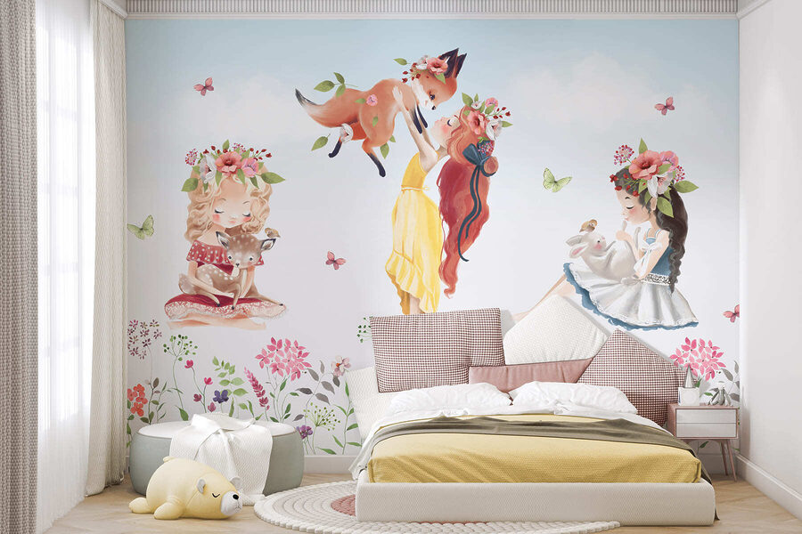 Transforme qualquer espaço com este mural de parede encantador que apresenta um grupo encantador de raparigas emparelhadas com animais adoráveis no meio de um vibrante campo de flores. Imagine as gargalhadas e os gritos de alegria que este mural proporciona, tornando-o o cenário perfeito para momentos de brincadeira. Cada rapariga, com o seu estilo único e o seu companheiro fofinho, capta um espírito caprichoso que dá a sensação de entrar num livro de histórias. Não se trata apenas de decoração; convida à imaginação e ao espanto. Acrescentando um toque de magia, este mural é uma afirmação encantadora nos quartos das crianças ou nas áreas de lazer, criando um oásis convidativo cheio de cor e calor. Uma recordação radiante de dias despreocupados passados ao ar livre, irá certamente suscitar conversas sinceras e doces recordações.