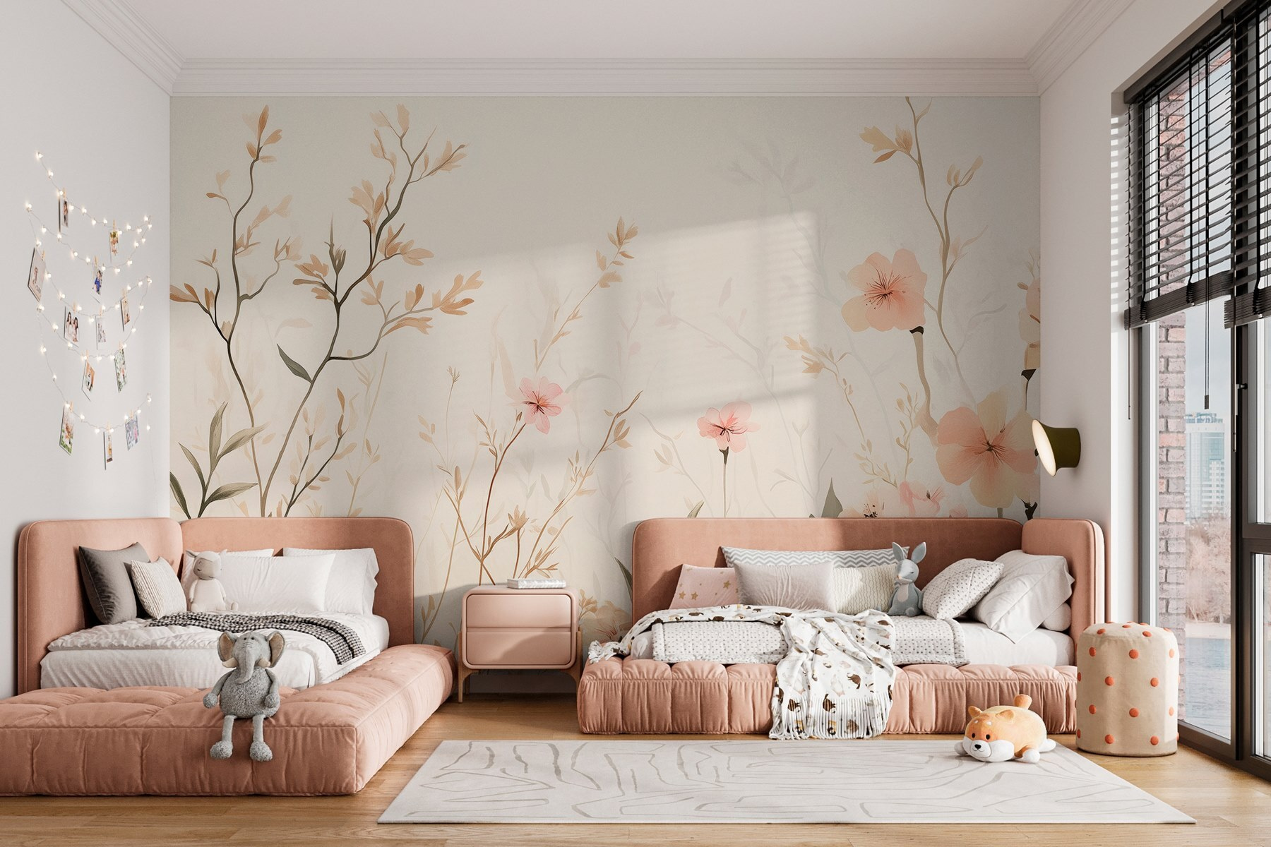 Imagine-se enrolado com um livro, sentindo-se inspirado pelo balanço suave da vegetação. Não é apenas decoração; é um estado de espírito. E sejamos honestos, quem não gostaria de sentir que está a viver num pequeno e elegante refúgio com jardim? Este mural cria um ambiente calmo com um toque de fantasia suficiente para o fazer sorrir. Quase dá vontade de se enrolar num cobertor aconchegante e beber uma chávena de chá, certo?