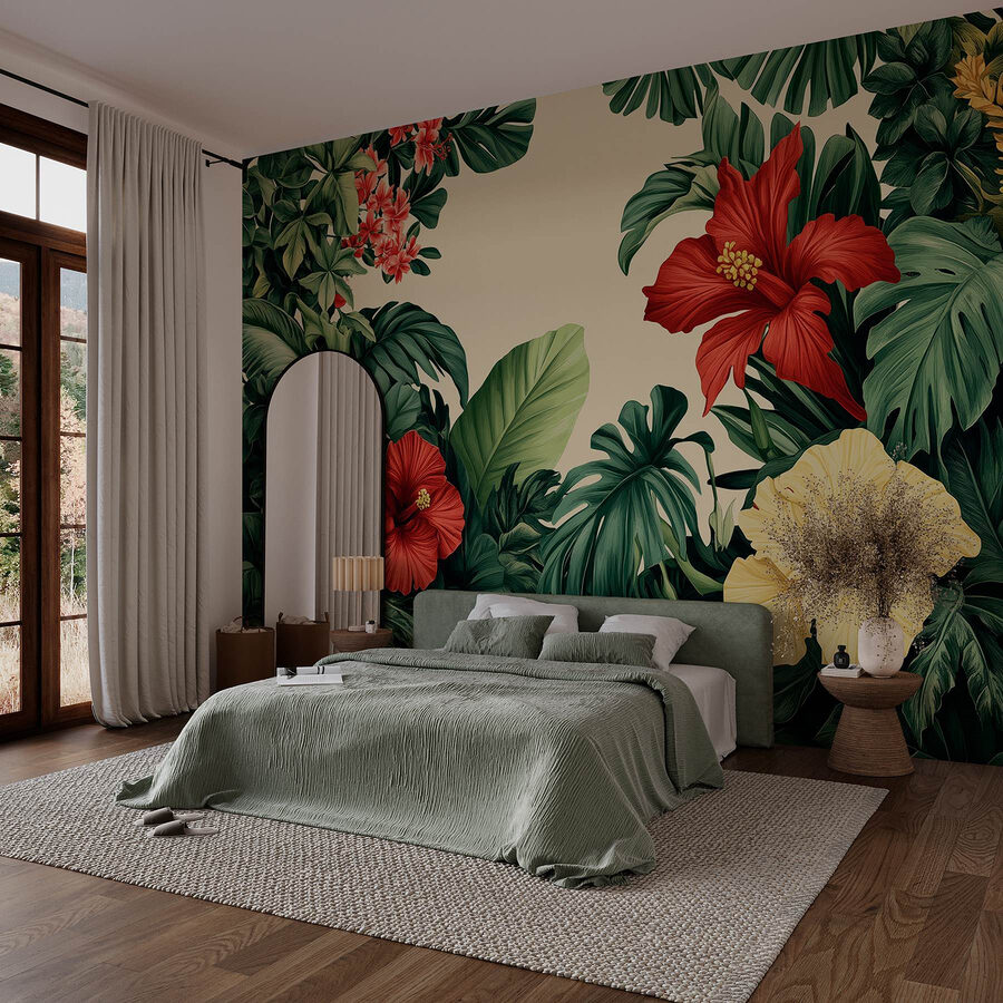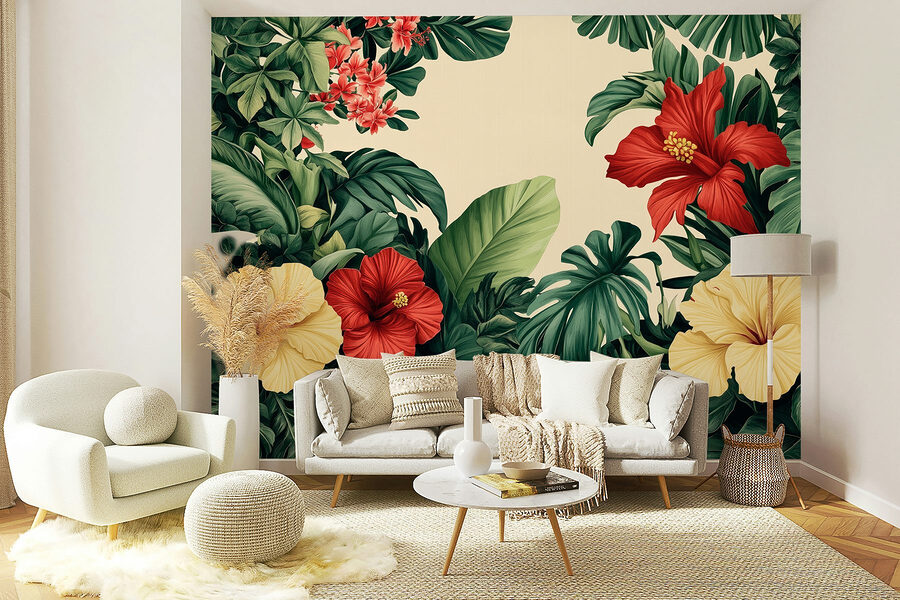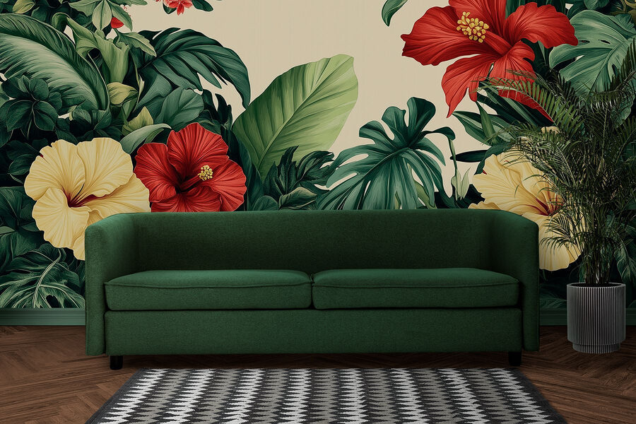 Transforme qualquer divisão numa escapadela tropical com este impressionante mural de parede que exibe um vibrante conjunto de flores e folhas exuberantes. Imagine entrar no seu espaço e ser recebido por flores de hibisco ousadas e verdes intensos. É como uma mini-férias em casa! Este mural não só acrescenta cor, mas também um espírito animado, perfeito para alegrar a sua sala de estar ou convidar um toque da natureza para um recanto de leitura acolhedor. Imagine-se a saborear uma bebida enquanto se deleita com esta beleza botânica — pura felicidade! Perfeito para quem anseia por um toque de charme ao ar livre sem ter de regar nada.