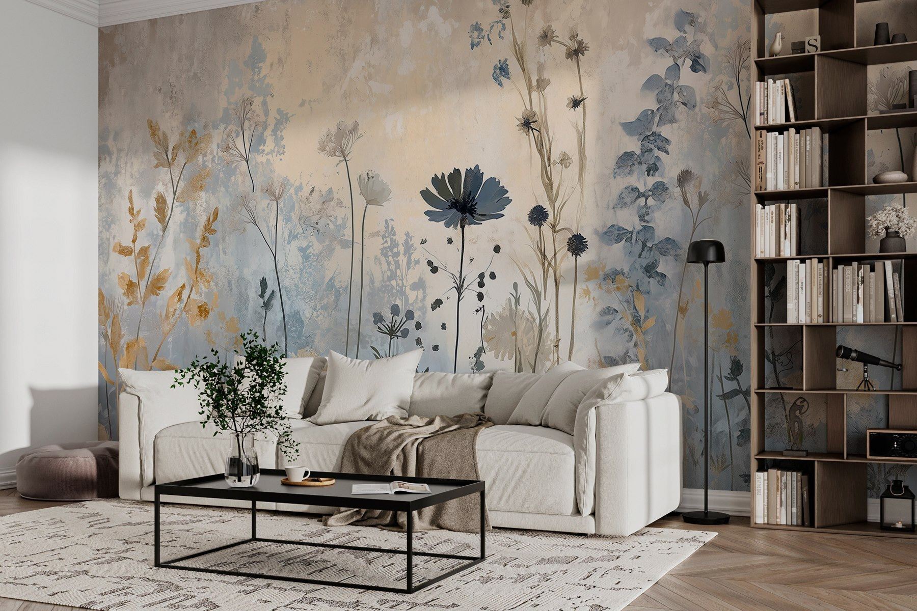 Transforme uma parede comum num maravilhoso mundo florido com este impressionante mural com delicadas flores em tons suaves e sonhadores. Imagine a alegria de entrar numa sala que parece um dia ameno de primavera, onde cada olhar traz um toque da natureza para dentro de casa. O efeito aquarela suaviza a estética, tornando-o perfeito para qualquer canto aconchegante ou espaço de convívio animado. Os amigos vão perguntar se transformou a sua casa num jardim — basta sorrir e acenar com a cabeça. Além disso, é um excelente tema para iniciar uma conversa! Quem diria que uma parede poderia parecer uma lufada de ar fresco? Mergulhe na felicidade floral e deixe as suas paredes falarem por si.
