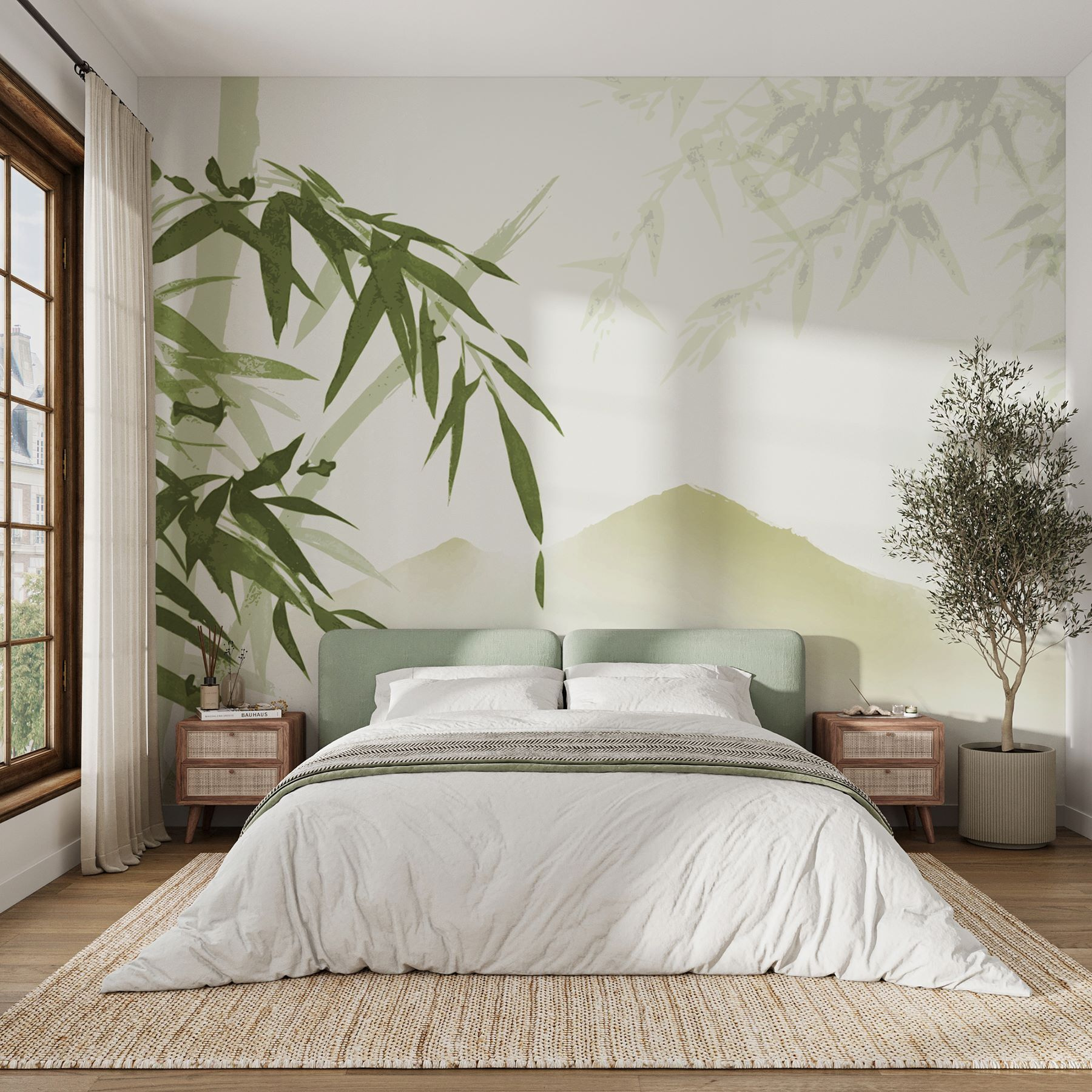 Transforme uma parede simples num refúgio sereno com o mural “Calming Bamboo and Mountain Landscape” (Bambu Calmante e Paisagem Montanhosa). Imagine entrar no seu quarto e sentir instantaneamente uma onda de tranquilidade a invadir-lhe o corpo. Os verdes suaves e as imagens delicadas do bambu quase o fazem ouvir o farfalhar das folhas numa floresta ventosa. Imagine-se a saborear um chá enquanto contempla aquelas montanhas — ah, nada como umas mini-férias em casa! É perfeito para criar um recanto aconchegante ou adicionar um toque de natureza a qualquer espaço. Ideal para aqueles momentos em que você só precisa fazer uma pausa e respirar. Então, por que não deixar um pouco da natureza entrar?
