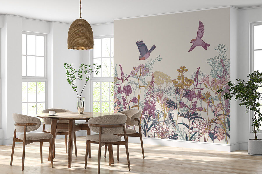 Imagine entrar num jardim sereno onde pássaros coloridos voam entre flores perfumadas. É exatamente isso que este mural “Pássaros voando sobre flores” faz, transformando qualquer divisão num refúgio encantador. A paleta de cores suaves e pastel acrescenta um charme delicado, fazendo com que pareça uma lufada de ar fresco numa preguiçosa manhã de domingo. Imagine um recanto aconchegante para leitura ou uma animada área de jantar enfeitada por essa cena encantadora. É como ter um pedaço da natureza nas suas paredes, provocando sorrisos e estimulando conversas. Quem não gostaria de ter esse tipo de ambiente no seu espaço? É um pequeno lembrete da beleza do cotidiano. Deixe os pássaros voarem e deixe seu espírito voar com eles!