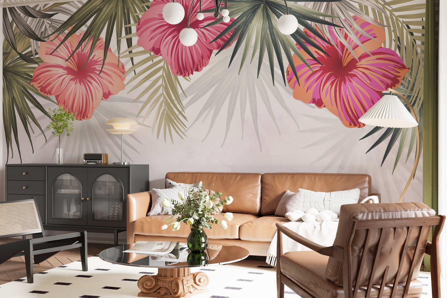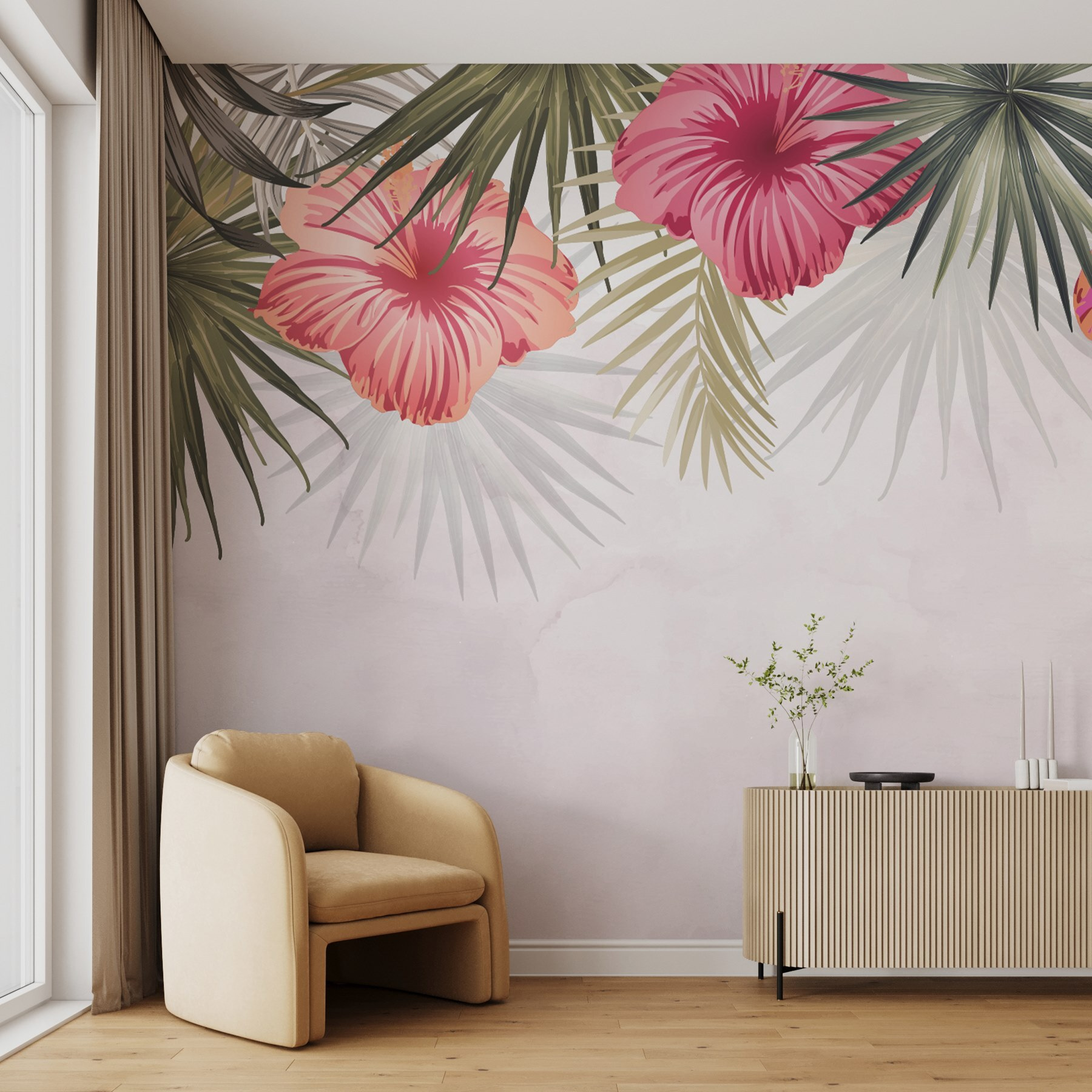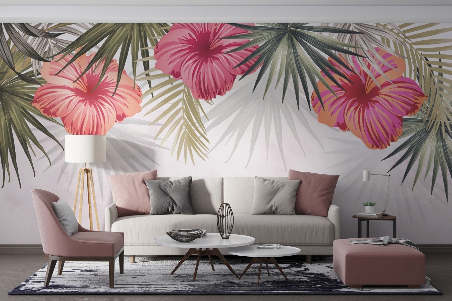 Transforme qualquer divisão numa paradisíaca ilha tropical com este impressionante mural de flores cor-de-rosa misturadas com folhas verdes exuberantes. É como ter um pedacinho da natureza em sua casa, perfeito para alegrar um espaço monótono. Imagine tomar o café da manhã rodeado por essas flores vibrantes — pode até inspirar alguns devaneios! As cores se destacam contra um fundo suave, tornando-o uma peça marcante sem chamar muita atenção. Claro, as plantas precisam ser regadas, mas essa beleza requer pouca manutenção! Perfeito para quem busca um toque do ar livre — sem se preocupar com os cuidados com as plantas. Então, vá em frente, deixe suas paredes florescerem!