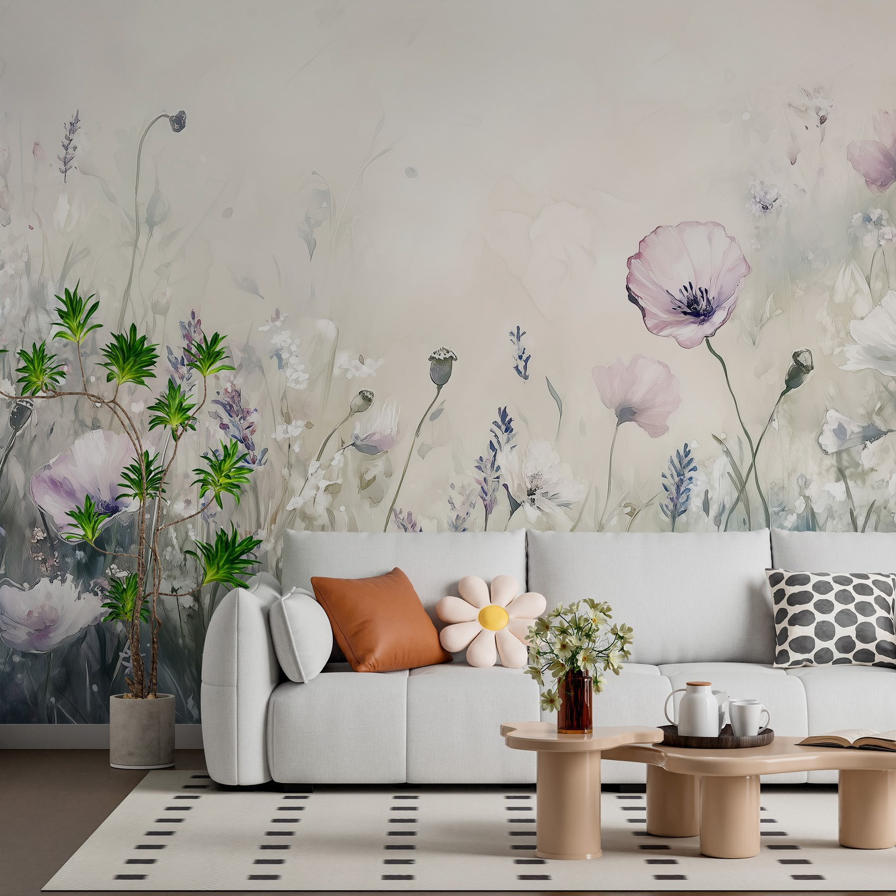 Transform any room into a serene escape with this “Wall Murals Painting of Flowers in a Field.” Picture stepping into a blooming meadow every time you glance at your wall. The soft pastels and gentle brush strokes create a calming vibe that whispers relaxation. It’s like inviting nature inside, minus the bees.