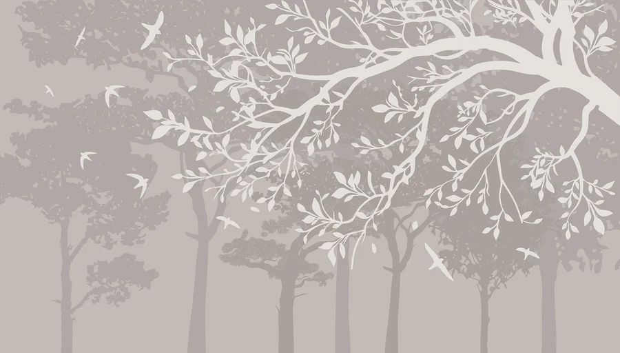 Transform your space with this stunning mural depicting a serene group of trees, complete with birds soaring through the air. It’s like stepping into a quiet forest—without the bugs and humidity. Imagine a cozy living room or a calming bedroom where this piece brings a whisper of nature indoors. The elegant tree branches dance across your wall, creating an atmosphere of tranquility that almost makes you forget about that pile of laundry in the corner. Whether it’s a creative nook or a reading corner, this mural effortlessly wraps any room in warmth and charm. Plus, it’s an instant conversation starter—who wouldn’t want to chat about their urban jungle vibes? A touch of nature never hurt anyone, right?