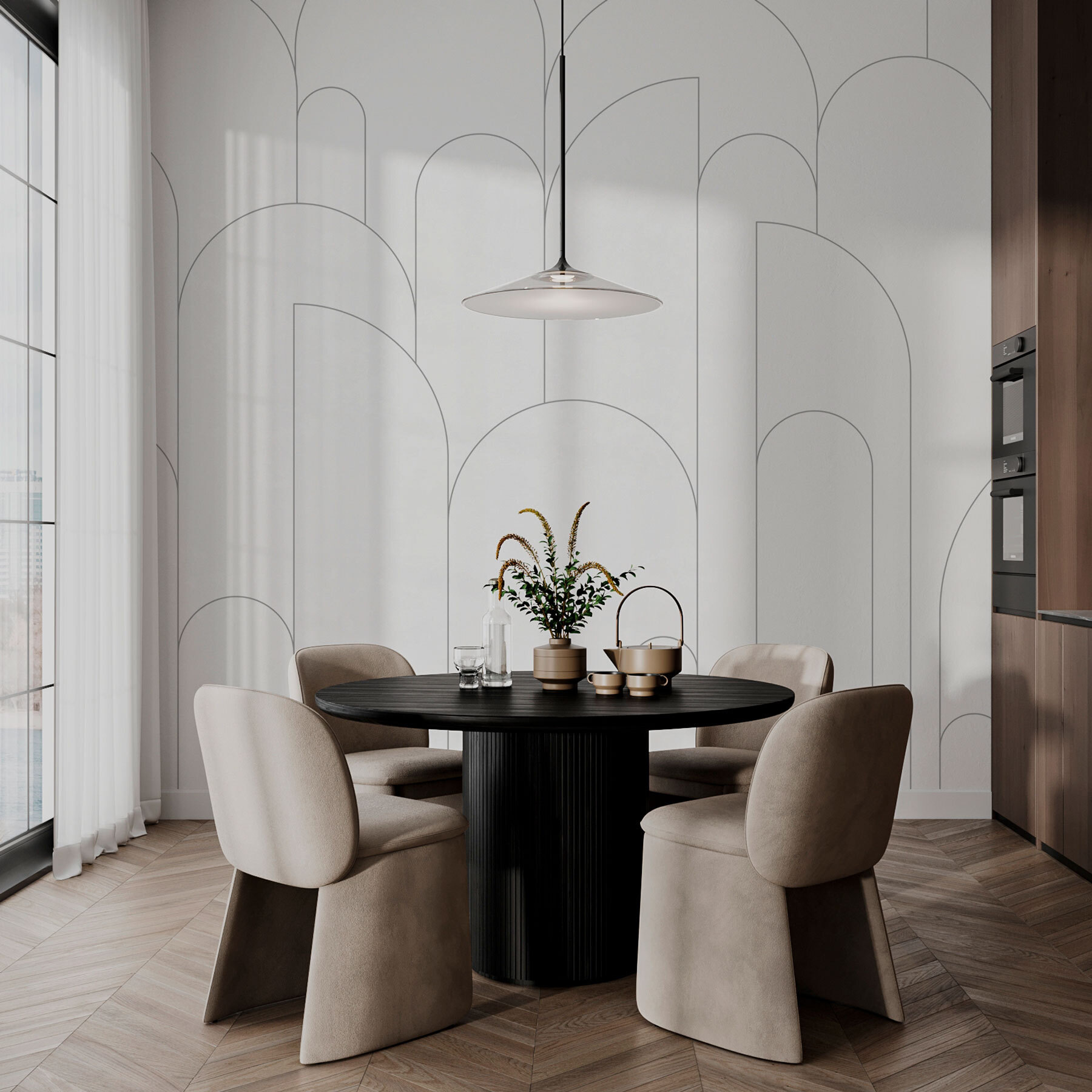 Transforme o seu espaço com este impressionante mural de parede com um padrão elegante em branco e preto que transmite uma vibração contemporânea. Imagine entrar numa sala que transmite um estilo descontraído, como um café acolhedor ou a sua galeria de arte favorita. Este mural é perfeito para quem procura adicionar um toque de elegância sem exagerar.