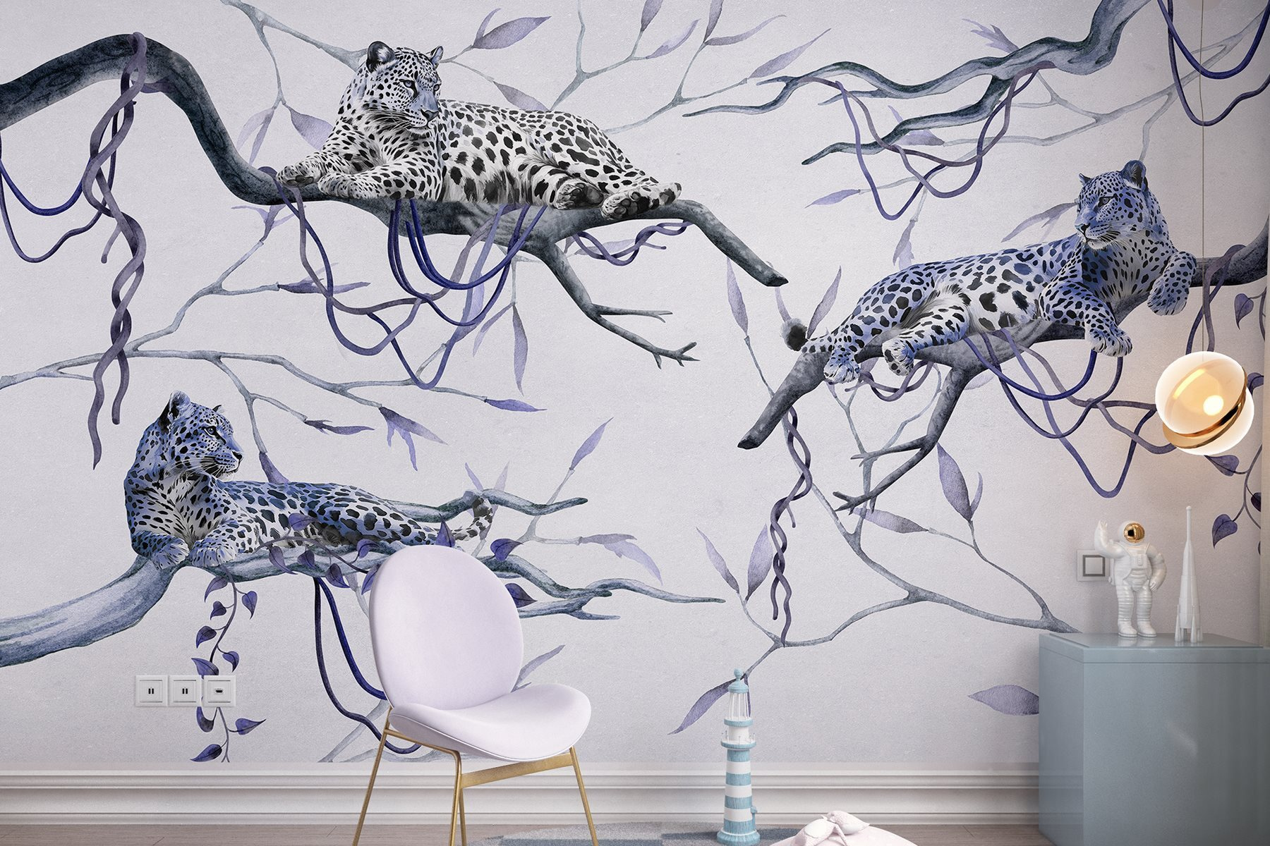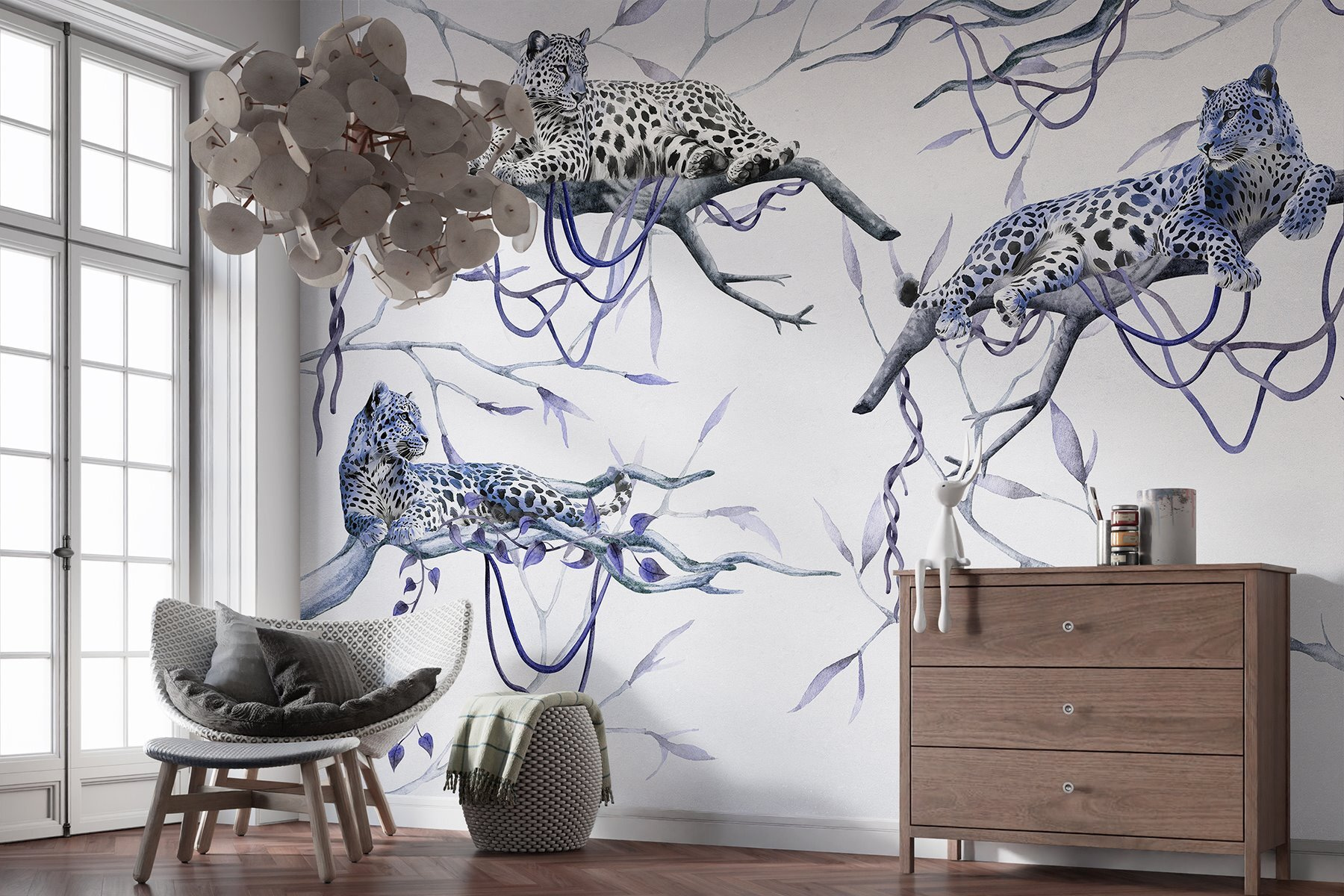 Transforme o seu espaço num paraíso selvagem com este mural cativante de leopardos descansando em galhos. Imagine acordar e sentir que entrou numa floresta serena. Estes magníficos felinos, com as suas manchas impressionantes e comportamento calmo, trazem uma atmosfera totalmente diferente à divisão. Perfeito para uma sala de estar ou um recanto acolhedor, este mural não é apenas decoração — é como ter um pedacinho da natureza em casa. As cores suaves e a arte detalhada convidam a sonhar acordado com aventuras tropicais, ao mesmo tempo que proporcionam relaxamento. É onde a vida selvagem se encontra com o calor — quem não gostaria disso?
