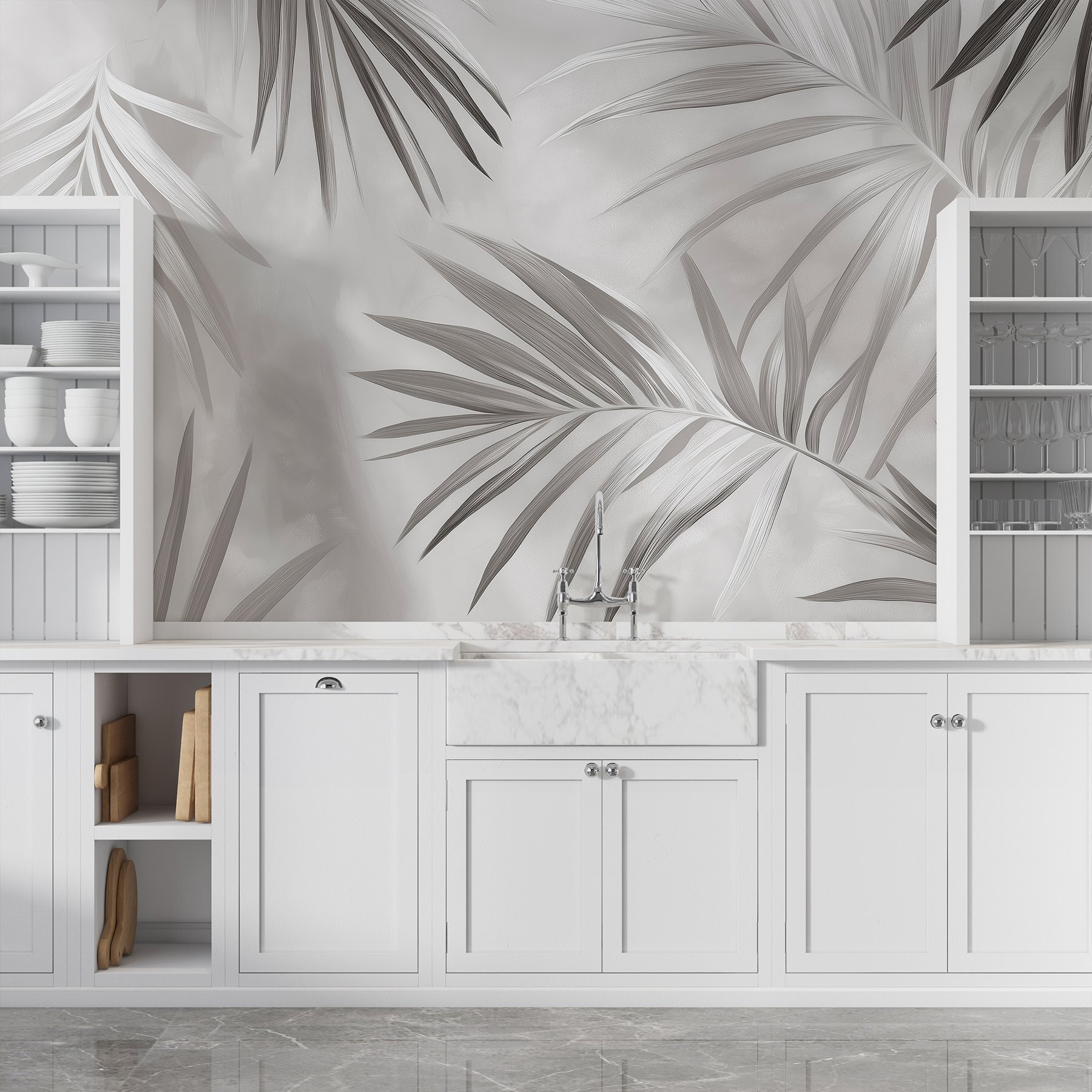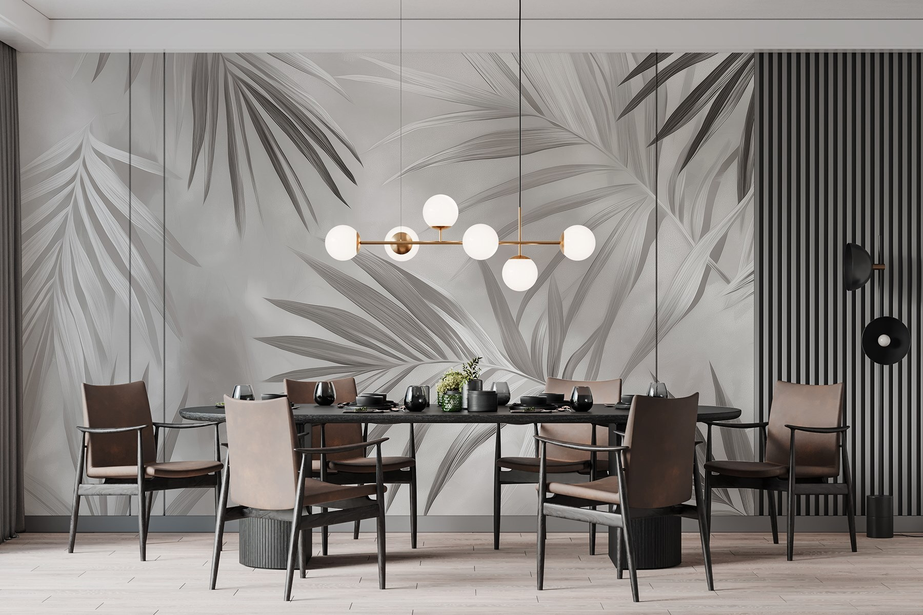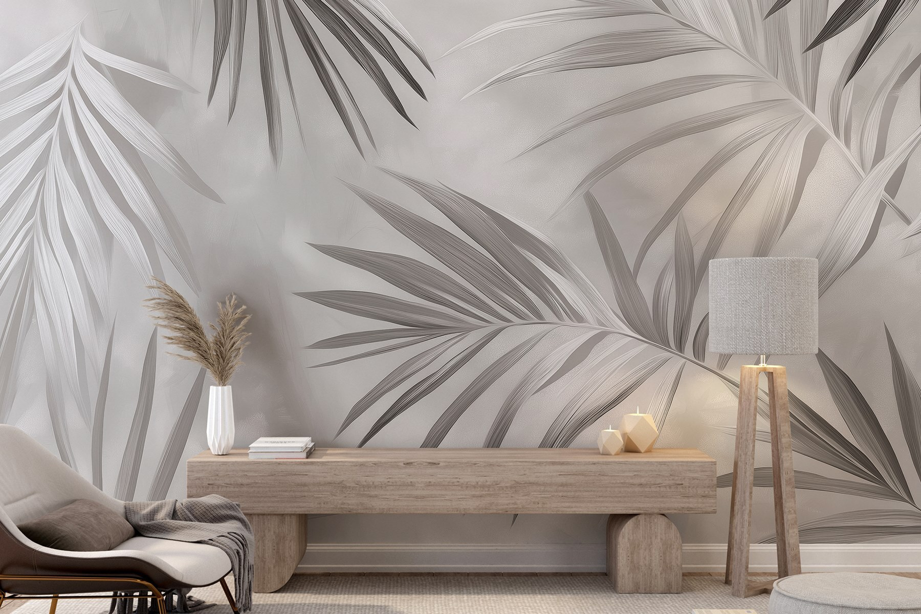 Transforme qualquer parede num refúgio sereno com este mural monocromático de folhas maravilhosamente suave. Imagine entrar num bosque tranquilo sempre que olhar para a sua parede. O movimento suave das folhas, envoltas em tons suaves de cinza, cria uma sensação de calma perfeita para espaços destinados ao relaxamento, como salas de estar acolhedoras ou quartos tranquilos. É como trazer um pedaço da natureza para dentro de casa, sem os insetos! Além disso, os tons subtis facilitam a combinação com qualquer estilo de decoração. Os seus amigos podem até pensar que contratou um designer — shh, é o seu segredinho!