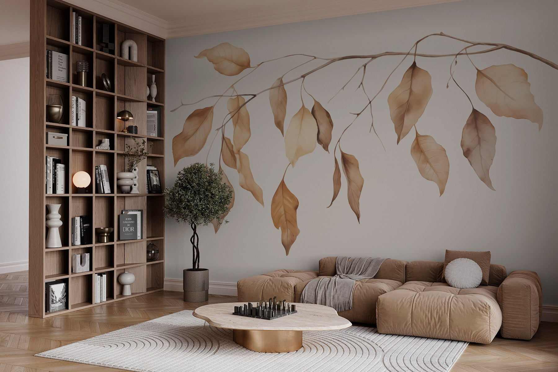Transforme uma parede em branco numa fuga serena com este mural de parede com ramos delicados adornados com folhas castanhas suaves. Cada folha sussurra histórias da natureza, criando uma vibração acolhedora que convida ao calor em qualquer espaço. Imagine-se a beber café numa sala agraciada por este mural, com os tons calmantes a combinarem lindamente com a sua decoração. Parece um outono sem fim, onde cada olhar para a parede o lembra de relaxar e respirar. Perfeita para salas de estar ou quartos, esta peça fará com que os convidados se interroguem sobre o seu jardim secreto, apenas à espera de ser explorado. É a natureza, mas sem os sapatos enlameados!