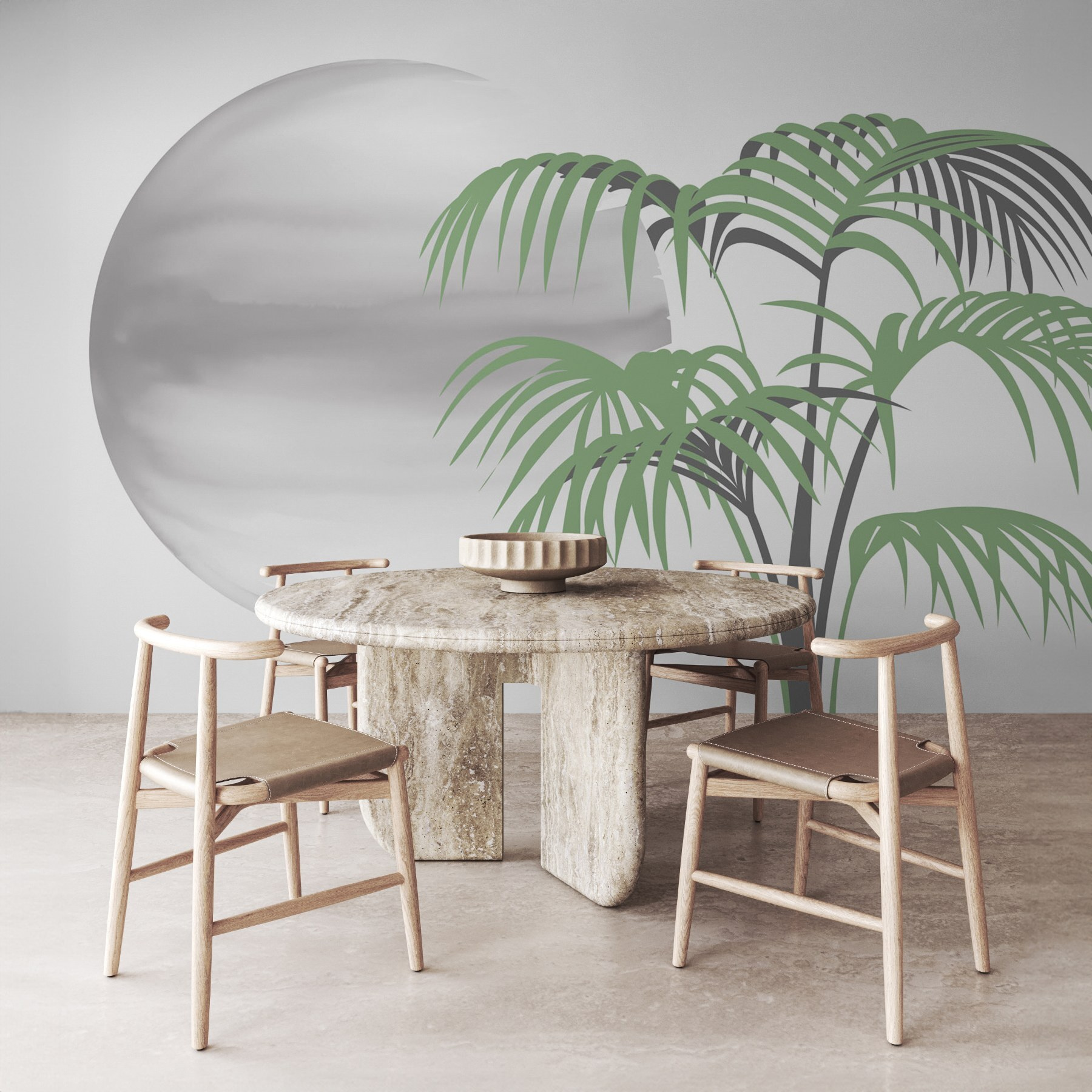 Transforme qualquer divisão numa oásis tropical com este mural deslumbrante com palmeiras e uma esfera branca suave e redonda. É como trazer um pedaço do paraíso para a sua sala de estar. Imagine-se a aconchegar-se com um livro enquanto o cenário sereno sussurra: «Ei, a vida é uma praia!» A paleta de cores é calma, mas fresca; perfeita para aqueles dias em que só quer relaxar. Seja na sala de estar ou no escritório em casa, este mural transmite uma sensação de tranquilidade, fazendo com que cada dia pareça umas mini-férias. Quem não gostaria disso? Decore, relaxe e evada-se sem sair de casa.