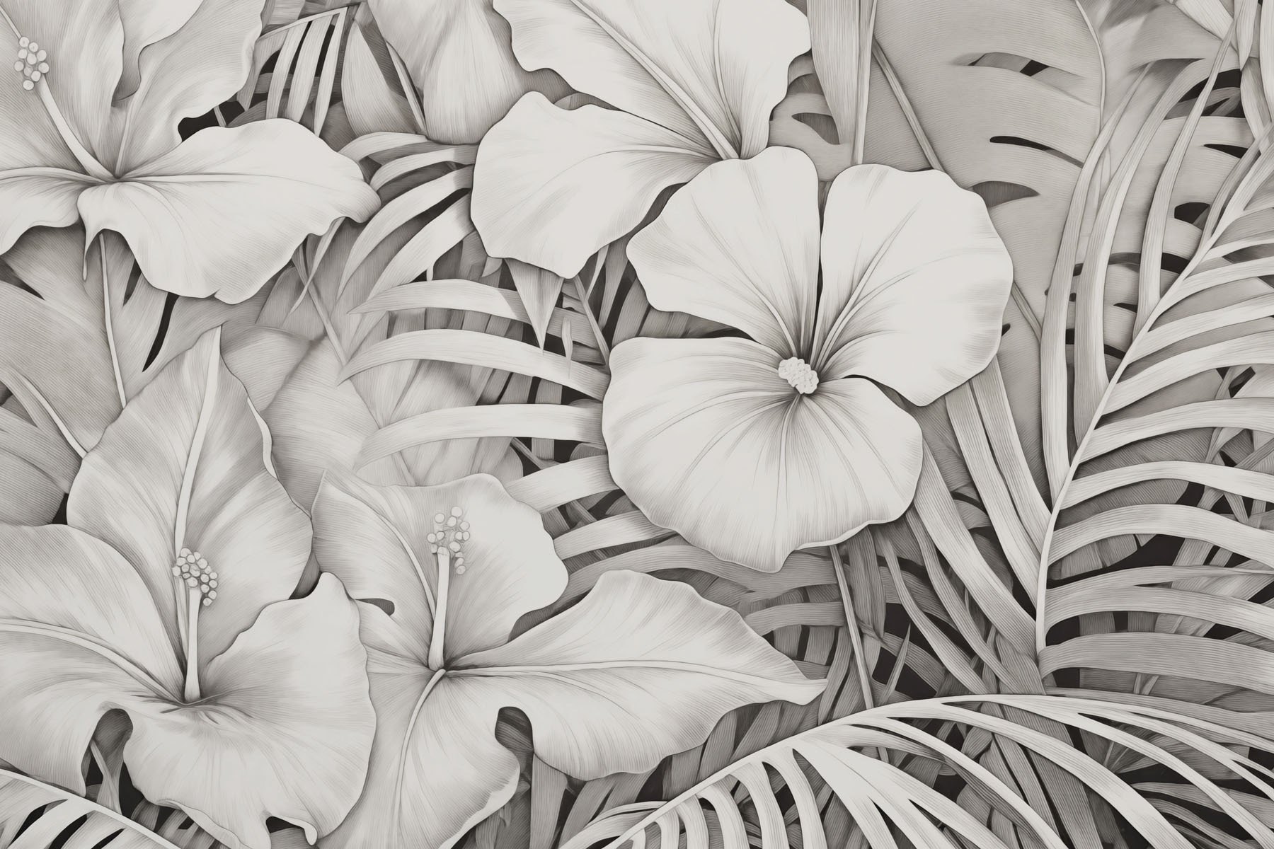 Transforme qualquer espaço num oásis tranquilo com este impressionante mural “Delicate Flowers in Monochrome Hues” (Flores delicadas em tons monocromáticos). Imagine entrar numa sala onde linhas suaves e padrões intricados de flores e folhas sussurram tranquilidade. Esta peça respira elegância, tornando-a perfeita para um recanto de leitura ou uma área de estar acolhedora.