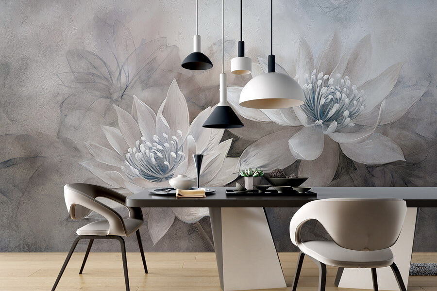 Transforme qualquer divisão numa oásis tranquila com “Delicate Blooms in Soft Hues” (Flores delicadas em tons suaves). Este encantador mural de parede capta a beleza serena dos nenúfares, quase como se estivessem a flutuar numa névoa onírica. Os brancos suaves e os cinzentos delicados criam uma atmosfera relaxante, perfeita para um recanto de leitura tranquilo ou para uma entrada convidativa. Imagine-se a afundar-se na sua cadeira favorita, com uma chávena de chá na mão, enquanto esta obra de arte sussurra calma ao seu espaço. É como receber um abraço suave da natureza cada vez que entra. Além disso, quem não adora um pouco de charme floral sem ter de se preocupar com a manutenção? Perfeito para quem adora flores, mas não consegue manter uma planta viva em casa!