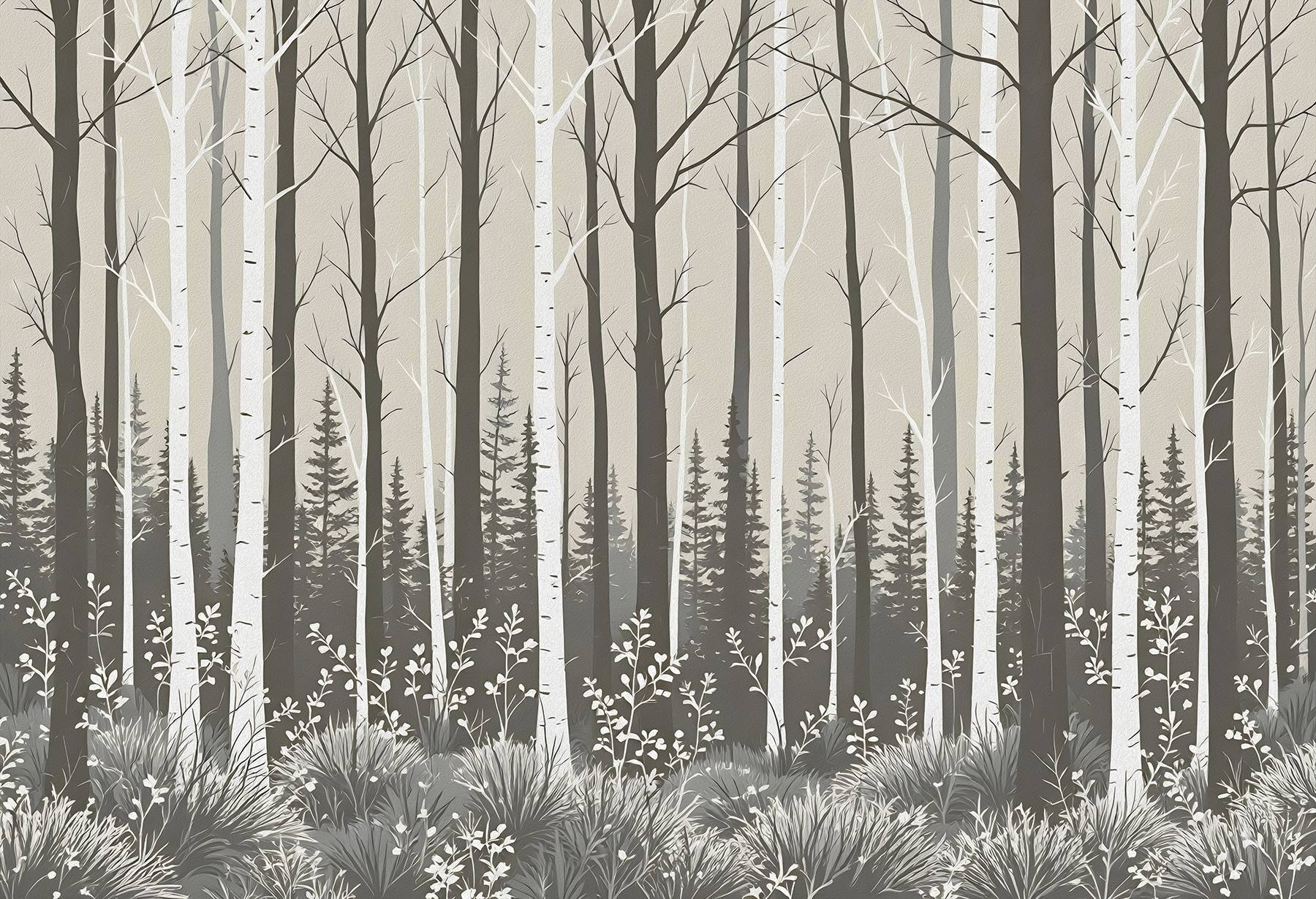 Transforme aquela parede simples num refúgio florestal acolhedor com este encantador mural “Floresta de Árvores e Arbustos”. Imagine entrar na natureza cada vez que passa por ali, com os tons suaves de cinza e brancos quentes a envolverem-no como um cobertor macio. É perfeito para criar um recanto de leitura tranquilo ou um cenário sereno para aquelas intermináveis chamadas Zoom. Imagine só: os amigos que aparecerem podem perguntar se você se mudou para uma cabana na floresta! Com bétulas altas e arbustos vivos a seus pés, é como trazer um pedaço do ar livre para dentro de casa. Perfeito para os amantes da natureza ou para quem precisa de uma lufada de ar fresco entre quatro paredes. Além disso, sem insetos para lidar — ótimo!