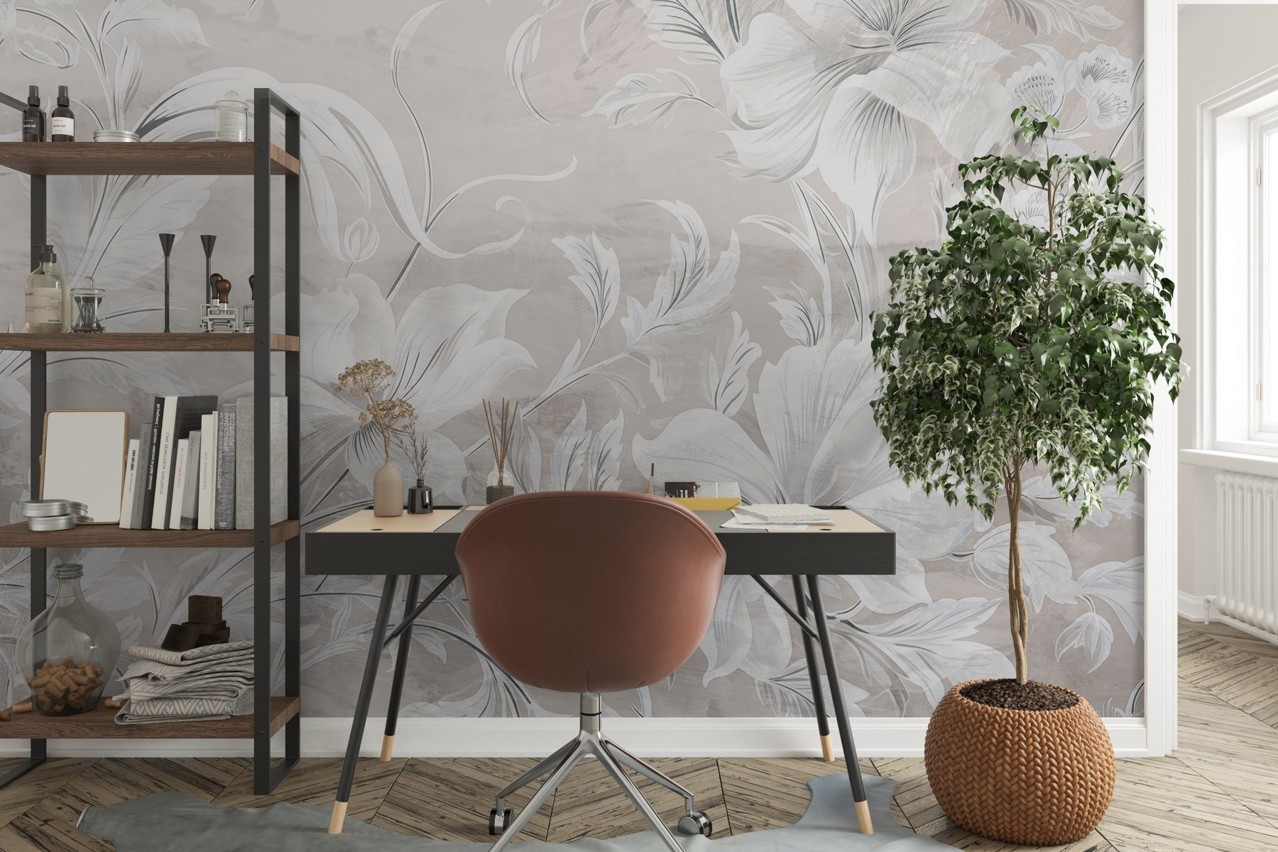 Transforme o seu espaço com este deslumbrante mural de parede com um delicado padrão floral branco e cinzento. É como ter um jardim sereno mesmo na sua sala de estar, mas sem a manutenção – sem rega ou caracóis incómodos! Os tons suaves criam uma vibração calmante, perfeita para noites aconchegantes ou goles de café da manhã. Imagine-se a enrolar-se com um livro, rodeado de flores que não murcham. Este mural acrescenta um toque de elegância, mantendo as coisas informais. Perfeito para quem procura elevar o seu jogo de decoração com um pouco de charme floral. Até pode dar por si a falar com ele – sem julgamento!