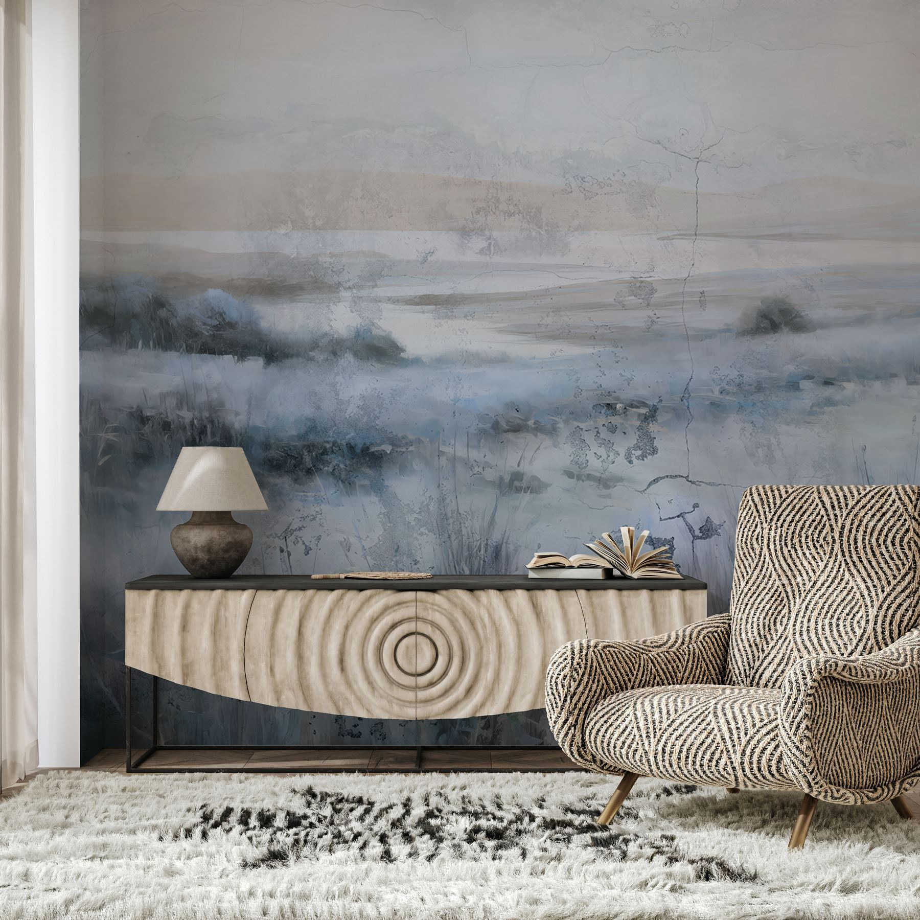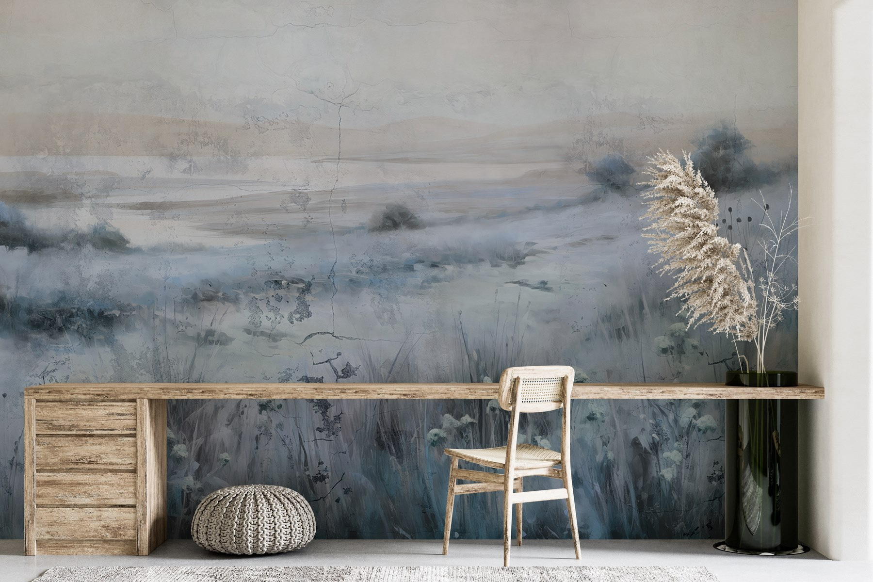 Transforme qualquer divisão numa fuga serena com este deslumbrante mural de parede de um campo tranquilo e um lago cintilante. Imagine entrar numa brisa suave, com a flora a balançar suavemente, criando um cenário natural que parece vivo. Os tons frios evocam uma sensação de calma, tornando-o perfeito para recantos de leitura acolhedores ou espaços de trabalho energizantes. Os amigos podem parar e perguntar: isto é um quadro ou o ar livre? É o tipo de vista que convida a sonhar acordado – perfeito para quem procura trazer uma fatia da natureza para dentro de casa. Uma pequena fatia de felicidade, exatamente onde mais precisa dela.