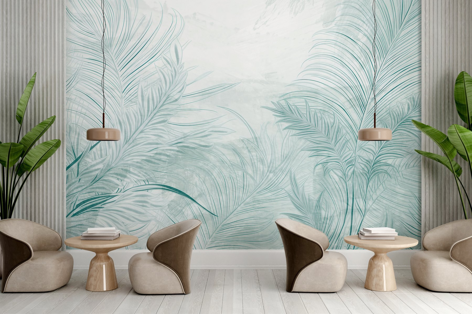 Transform any room with the “Serene Green Foliage” mural. Imagine walking into a space that feels like a soft breeze through a tropical paradise—sounds lovely, right? This mural wraps the walls in gentle greens and dreamy textures, making it perfect for relaxing moments or a little escape from the daily grind. It’s like bringing nature inside without all the bugs and dirt.