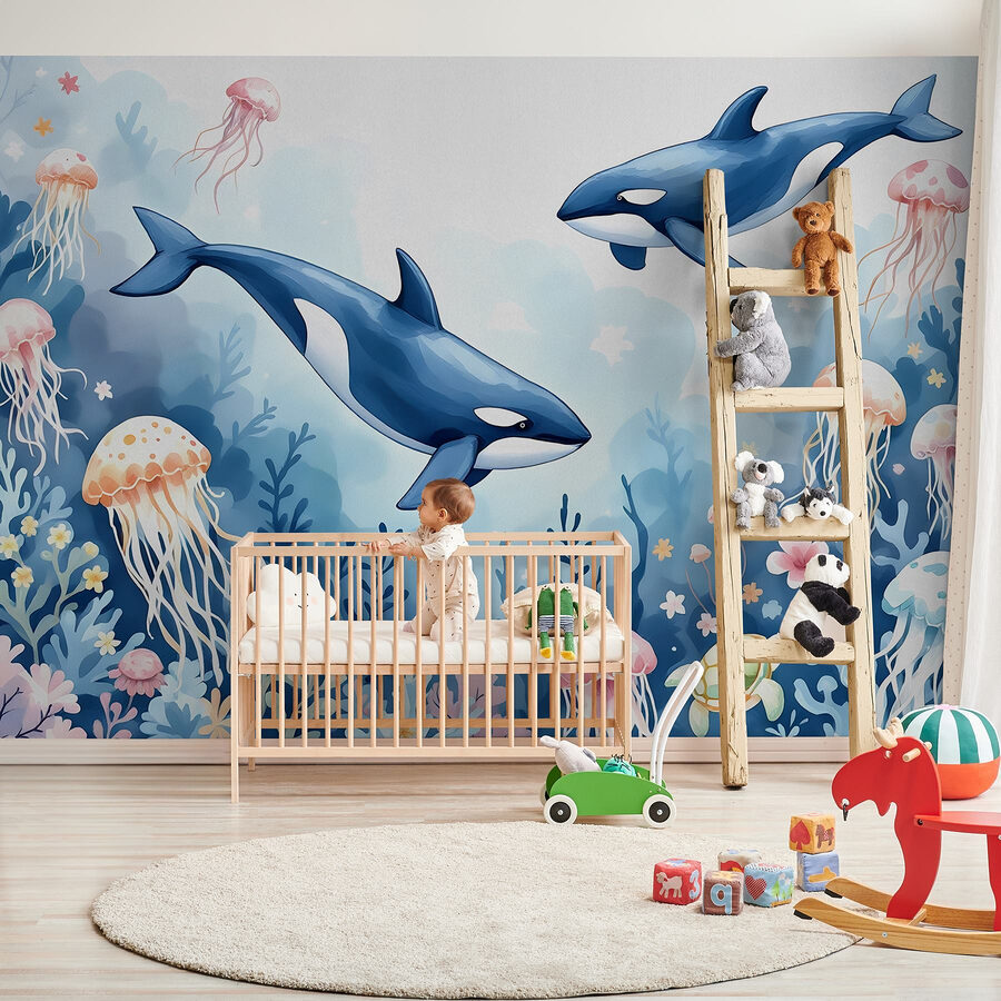 Transforme o seu espaço num mundo subaquático encantador com este mural de parede que apresenta baleias e uma tartaruga brincalhona a divertir-se nas águas vibrantes do oceano. Imagine entrar numa sala onde as medusas flutuam preguiçosamente e os corais coloridos balançam como se estivessem a dançar. É como ter o seu próprio pedaço do mar em casa! Perfeito para ambientes costeiros, este mural vai fazer você sonhar acordado com dias de praia e brisas marítimas. Quem não sorriria ao ver tartarugas vivendo suas vidas em um mar de serenidade? Esta obra de arte não é apenas decoração; é um convite para escapar e explorar — sem precisar de equipamento de mergulho!