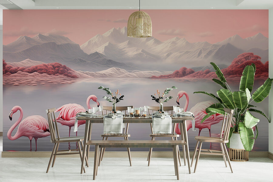 Traga um pedaço do paraíso para dentro da sua casa com este mural deslumbrante que apresenta dois flamingos elegantes em pé graciosamente em águas tranquilas. As cores suaves em tons pastel e a paisagem de sonho transportam-no para um refúgio tropical sem sair da sua sala de estar. Imagine-se a saborear o seu café da manhã enquanto contempla esta cena serena — é como umas pequenas férias para a sua parede! Perfeito para aqueles que acreditam no poder calmante da natureza, este mural transforma qualquer espaço num mini oásis. Além disso, quem não gostaria de ter flamingos a exibir o seu estilo na sua casa? Eles podem até inspirar alguns passos de dança alegres — é só uma ideia! Não se trata tanto de perfeição, mas sim daquela vibração que o faz sorrir.