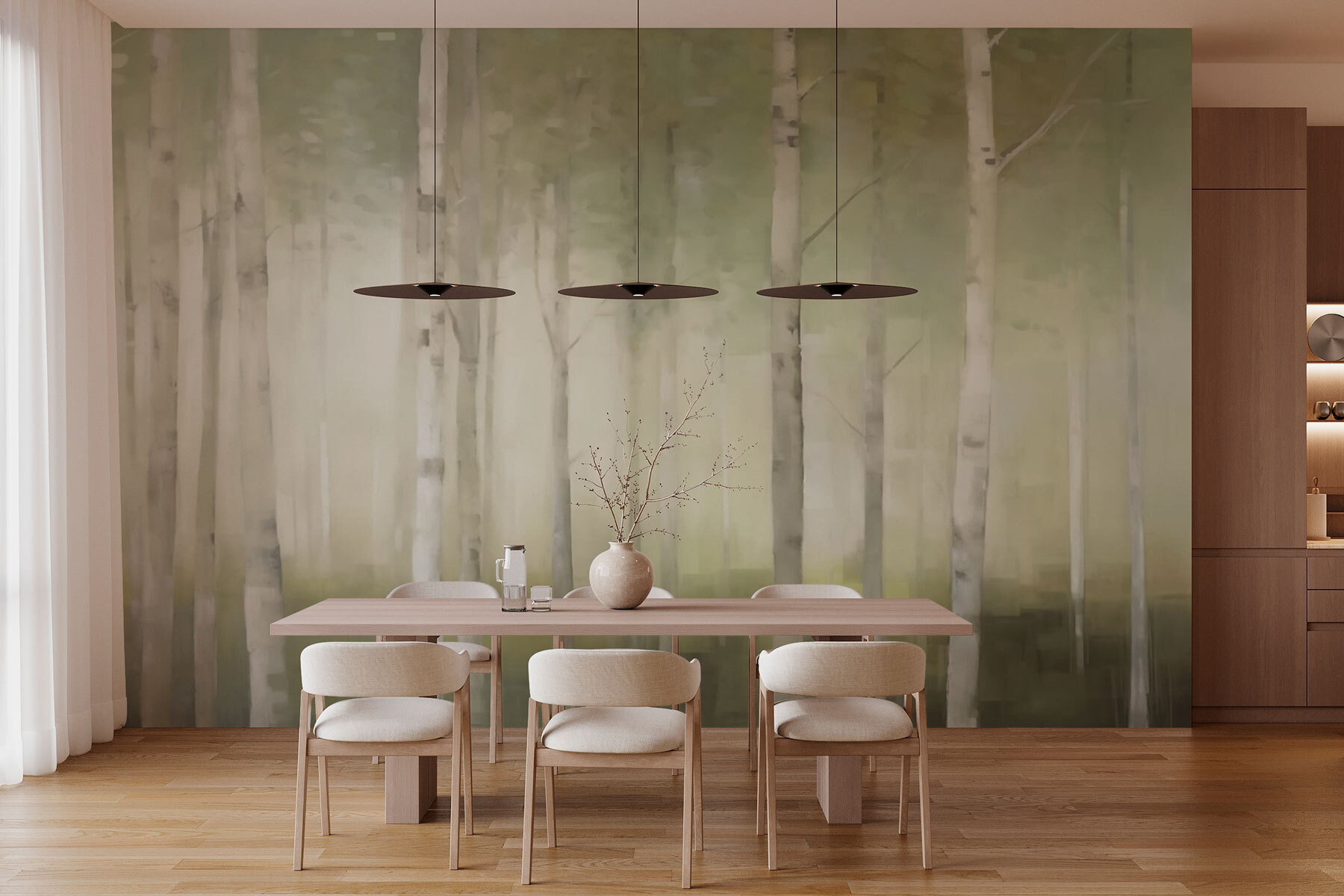 Transform any room into a cozy forest retreat with this stunning mural featuring a serene group of trees. Imagine stepping into a lush, dreamy forest just by walking into your space—sounds nice, right? The soft colors and gentle textures evoke a sense of calm, perfect for unwinding after a long day. Plus, it’ll impress your friends—who doesn’t love a little nature-inspired vibe? Just think, no muddy boots required! Whether it’s the living room or a quiet reading nook, this mural brings the outdoors in, creating a refreshing escape every time you glance at it.
