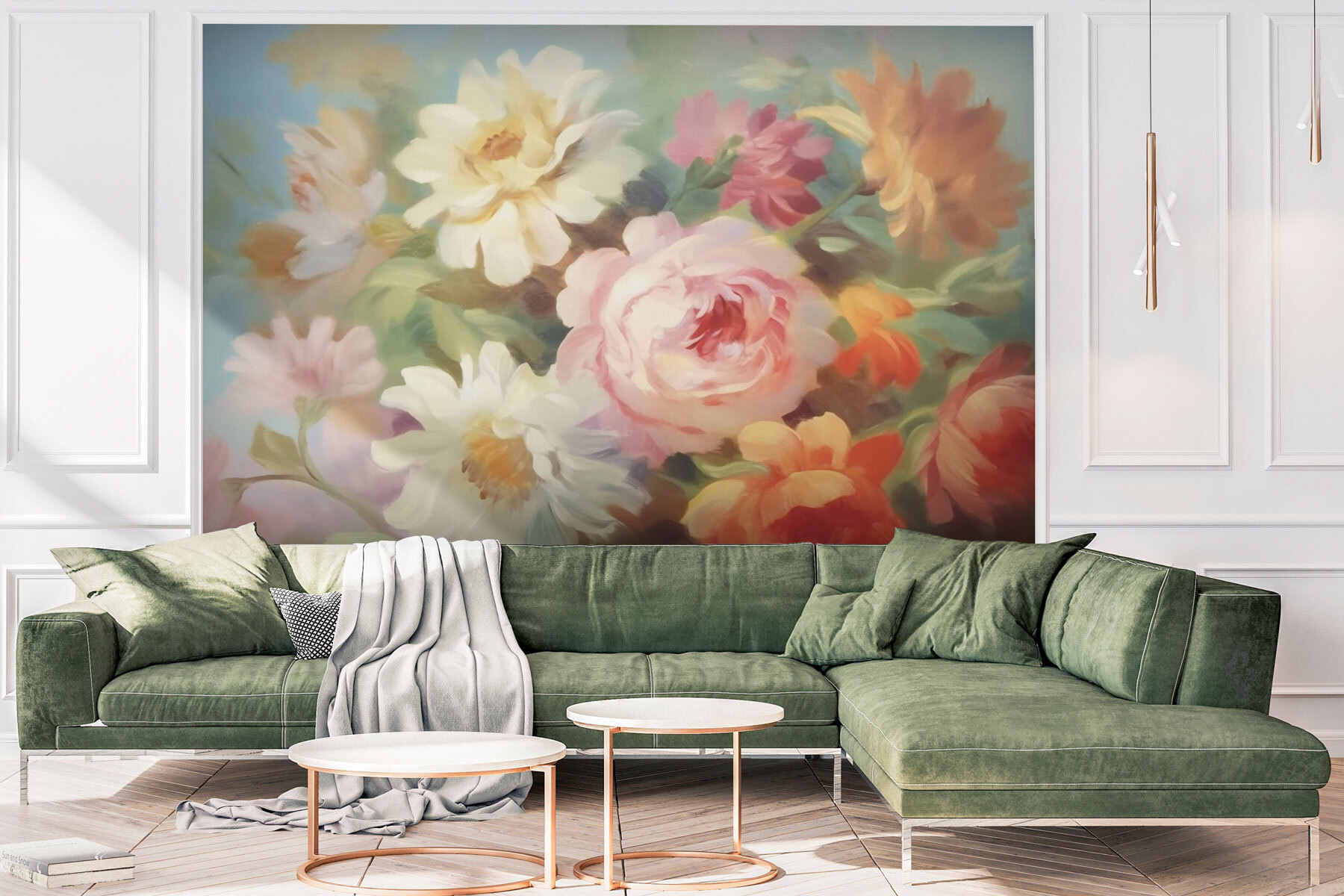 Transform any wall into a blooming paradise with this stunning wall mural of flowers against a soothing blue backdrop. It’s like having a garden that never wilts—perfect for those who love nature but lack a green thumb! Imagine waking up to these vibrant petals every morning, making coffee feels like a ceremonial affair. Friends visiting? They’ll surely stop and admire, maybe even ask if you’ve secretly become a painter. Each petal brings warmth and cheer, easily brightening up even the drabbest room. Let this mural add a splash of personality to your space—no watering required!