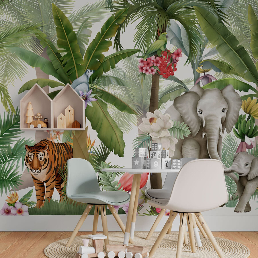 Transforme o seu espaço com este mural vibrante da selva, onde macacos brincalhões balançam e elefantes majestosos vagueiam. É como entrar numa floresta tropical animada, sem as picadas de mosquito! Os verdes exuberantes e os pássaros coloridos criam um cenário que é ao mesmo tempo relaxante e revigorante. Imagine-se a saborear o seu café da manhã enquanto sente o sol quente e a brisa suave — oh, espere, é apenas a sua aconchegante sala de estar! Perfeito para os amantes dos animais, este mural traz a natureza selvagem para dentro de casa, despertando alegria e fazendo com que cada momento pareça uma aventura. Desfrute das vibrações tropicais durante todo o ano!