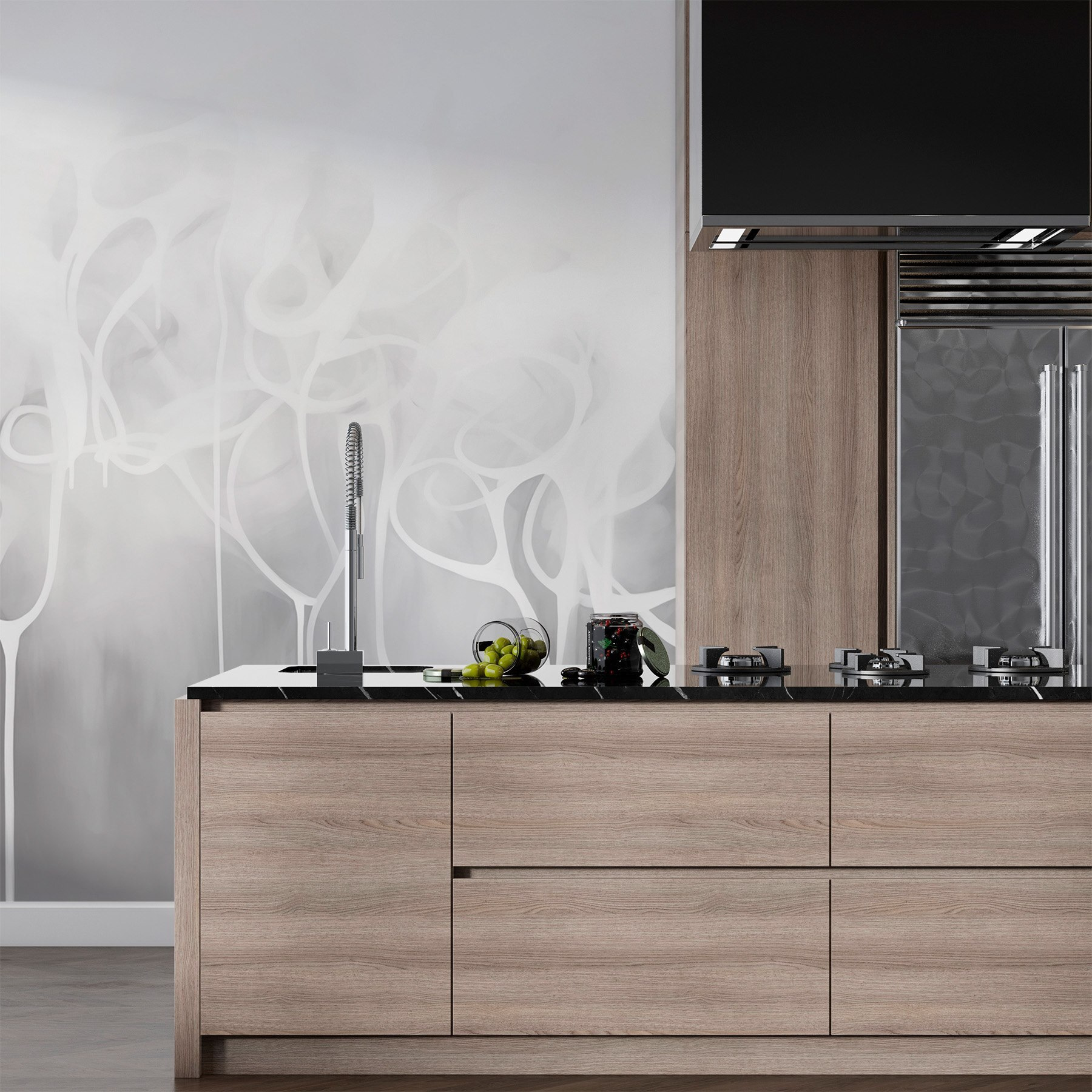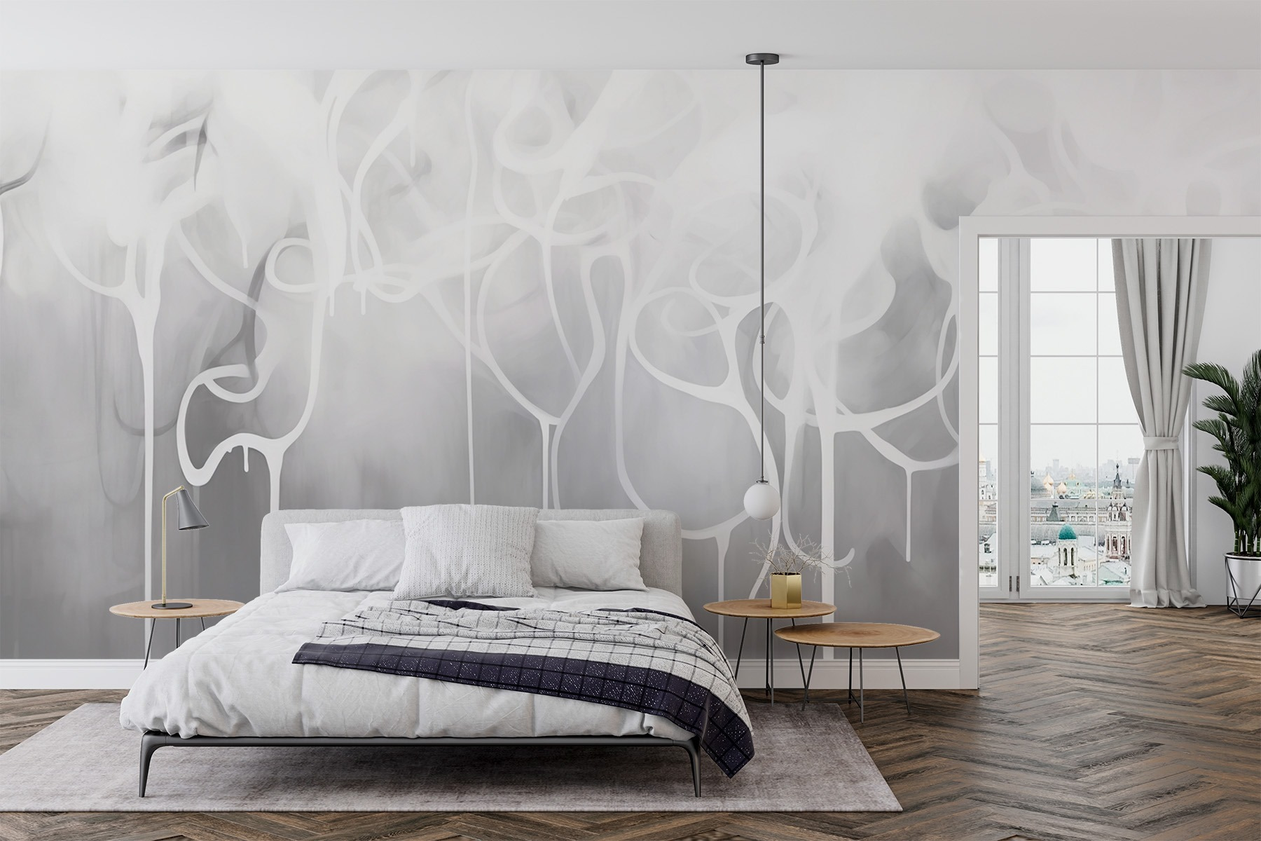 Transforme qualquer espaço com este mural de parede cativante, com tinta branca que parece pingar de uma nuvem. Imagine entrar numa sala onde o céu encontra as suas paredes – quão fixe é isso? A mistura suave de cores cria um cenário relaxante, perfeito para um recanto acolhedor ou uma área de estar elegante. É como ter uma peça de criatividade mesmo em casa. Os amigos podem perguntar se o mural é a nova tendência de papel de parede em voga de que ainda não ouviram falar. Cada olhar pode despertar um pequeno devaneio, tornando a vida um pouco mais caprichosa. Perfeito para aqueles que adoram uma vibração minimalista com uma reviravolta, este mural acrescenta carácter sem ser demasiado exagerado.