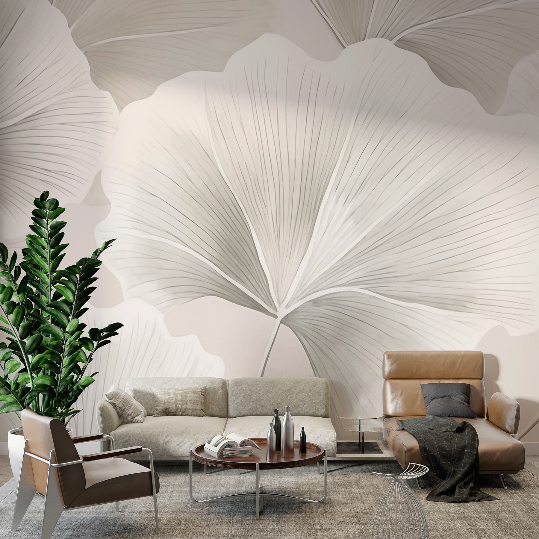 Papel de parede Folhas suaves em delicada harmonia Papel de parede Folhas suaves em delicada harmonia