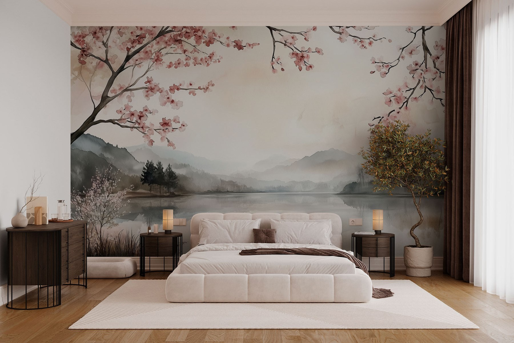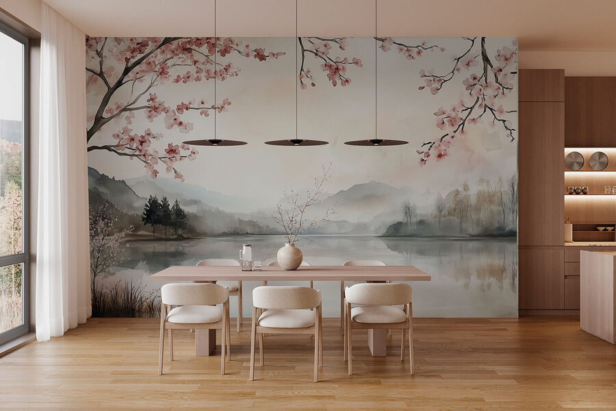 Transforme o seu espaço numa fuga serena com este deslumbrante mural de aguarela de um lago rodeado por montanhas suaves e enevoadas e árvores delicadas. Imagine entrar no seu quarto e sentir-se como se pudesse passear ao longo daquela água tranquila, talvez até atirar uma pedra e ver as ondulações a dançar. Os tons suaves trazem vibrações calmas e um equilíbrio perfeito, tornando-o num refúgio acolhedor para descontrair ou reunir-se com amigos. É como um abraço da natureza, mesmo na sua parede, convidando a momentos de devaneio e respirações profundas. Quem não quereria isso?✨ Quer vá para um retiro rústico ou para um toque moderno, este mural liga tudo sem esforço.