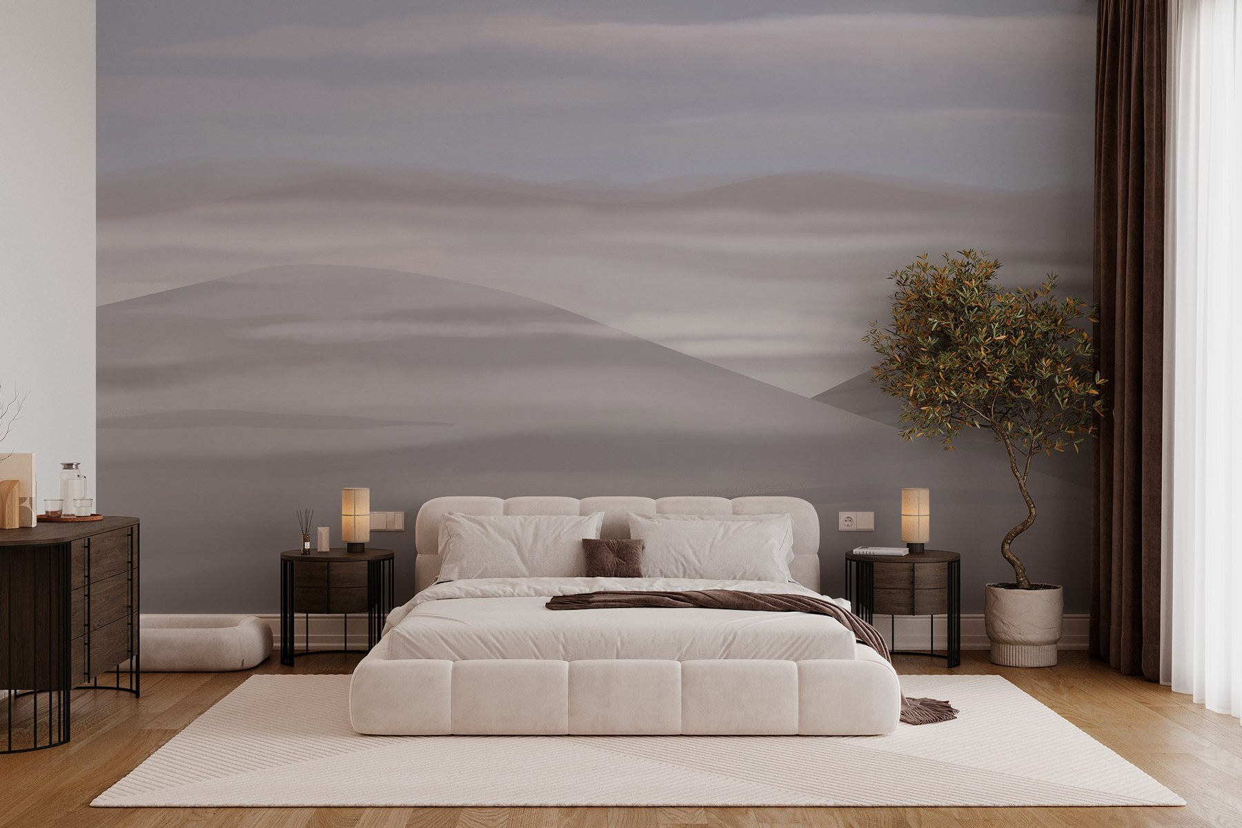 Transforme qualquer divisão com este mural de parede de sonho com colinas suaves e nuvens macias. Imagine-se a afundar-se no seu sofá, rodeado por uma paisagem serena que sussurra calma. É como uma mini-fuga sem a confusão da viagem! As tonalidades subtis convidam ao relaxamento, tornando-o perfeito para um recanto de leitura acolhedor ou até para um espaço de trabalho criativo. Os amigos podem entrar e sentir-se um pouco mais leves, perguntando-se se acabaram de entrar numa pintura tranquila. Este mural não se limita a decorar – acalma o espírito, por isso relaxe e deixe fluir as vibrações da montanha!