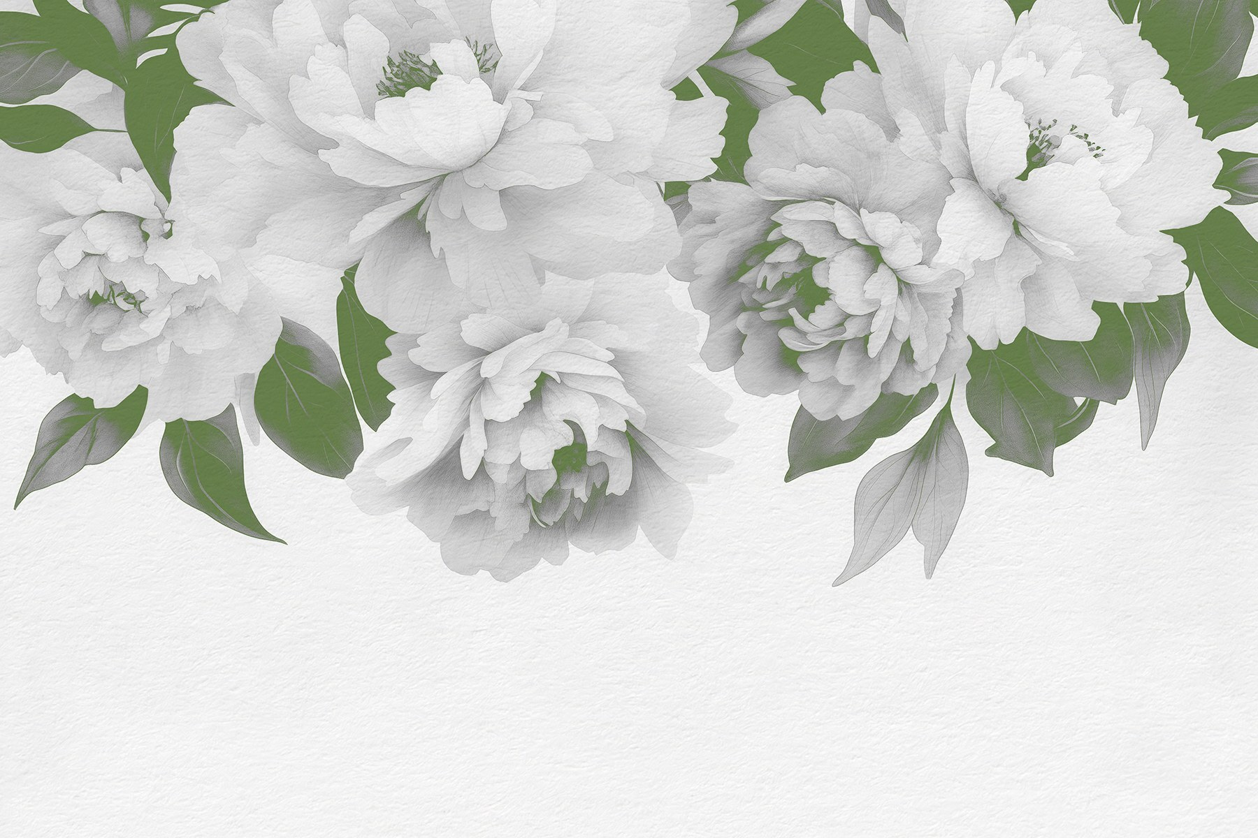 Papel de parede Grupo de flores brancas com folhas verdes (REF: w03317v2)