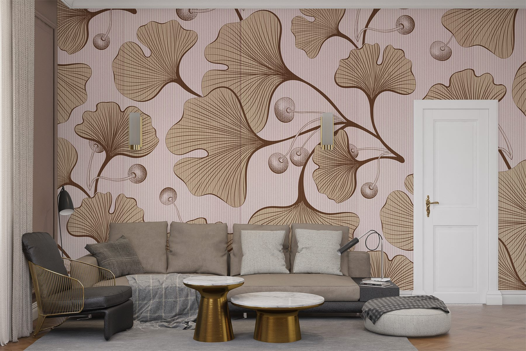Transforme qualquer divisão numa fuga serena com este elegante mural botânico. Com tons suaves e terrosos e delicadas folhas de ginkgo, traz uma lufada de ar fresco para dentro de casa. Imagine acordar com este padrão suave que parece um passeio tranquilo por um jardim exuberante. Perfeito para um recanto de leitura acolhedor ou para um quarto tranquilo, sussurra calma e beleza natural. É o tipo de arte de parede que desperta a conversa e deixa o seu espaço respirar. Não é apenas decoração, mas uma dose diária do encanto da natureza mesmo em casa. Um toque simples que parece refrescantemente especial.