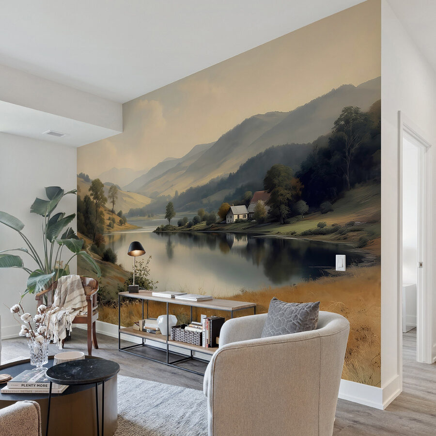 Transforme uma parede aborrecida numa fuga serena com este deslumbrante mural de parede de um lago tranquilo, uma casa encantadora e árvores suaves. Imagine beber café, aconchegado no seu sofá, enquanto mergulha nas vibrações tranquilas. Os tons suaves sussurram “relaxar” enquanto convidam à calma no seu espaço. Imagine uma manhã de domingo, pássaros a chilrear lá fora, luz a entrar – é como ter um pedaço de natureza na sua sala de estar. Perfeito para os amantes do ar livre ou para quem precisa de uma mini-fuga na sua própria casa. Então, porque não trazer uma pequena fatia de serenidade para dentro de casa?