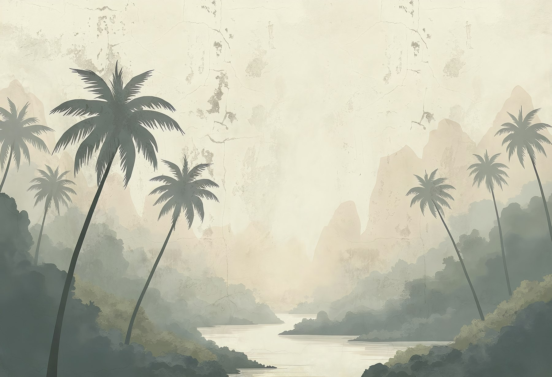 Transformar uma sala num refúgio sereno é tão fácil como este deslumbrante mural de parede de um rio rodeado por árvores de sonho e montanhas majestosas. Imagine chegar a casa depois de um longo dia, afundar-se na sua cadeira confortável e sentir-se como se tivesse sido transportado para um pacífico paraíso tropical. As cores suaves evocam a luz suave da manhã, sussurrando promessas de calma. Perfeito para um recanto acolhedor ou para uma parede de destaque, este mural convida a sonhar acordados com aventuras distantes. Quem não quer uma fatia da natureza mesmo em casa? Acrescenta profundidade, carácter e uma pitada de desejo de viajar a qualquer espaço – um pequeno pedaço da natureza, mesmo ao alcance da mão.