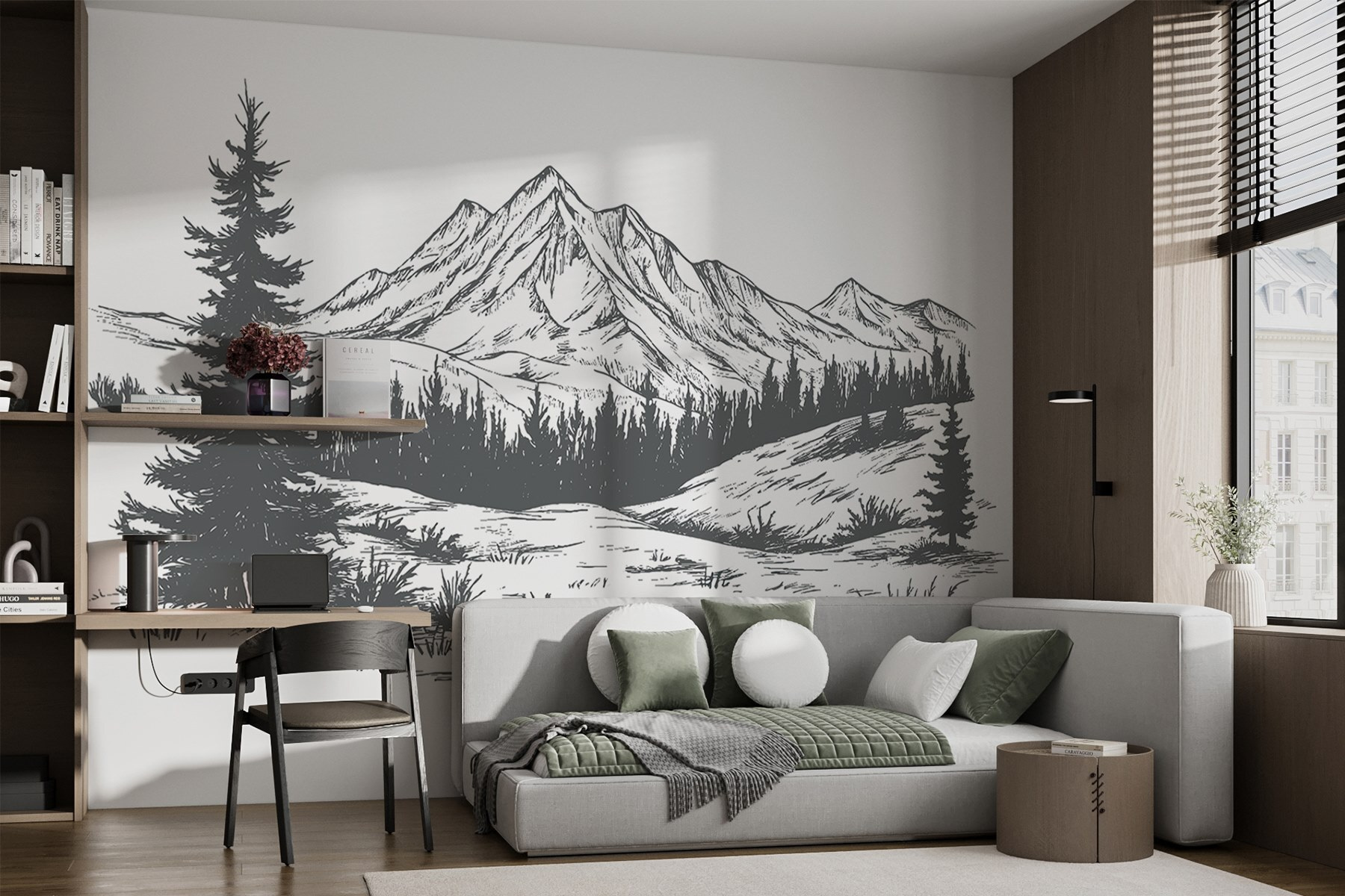 Transforme o seu espaço numa fuga serena com este mural de parede cativante de uma cadeia de montanhas. Imagine isto: está aconchegado na sua cadeira favorita, a beber café enquanto contempla os picos majestosos e as árvores exuberantes. É como ter um retiro na natureza mesmo na sua sala de estar. Este mural capta a beleza do grande ar livre, evocando uma sensação de aventura e calma ao mesmo tempo. Ideal para quem deseja um toque de natureza, é perfeito para inspirar devaneios ou conversas animadas. Então, porque não deixar que essas montanhas inspirem a sua próxima aventura?